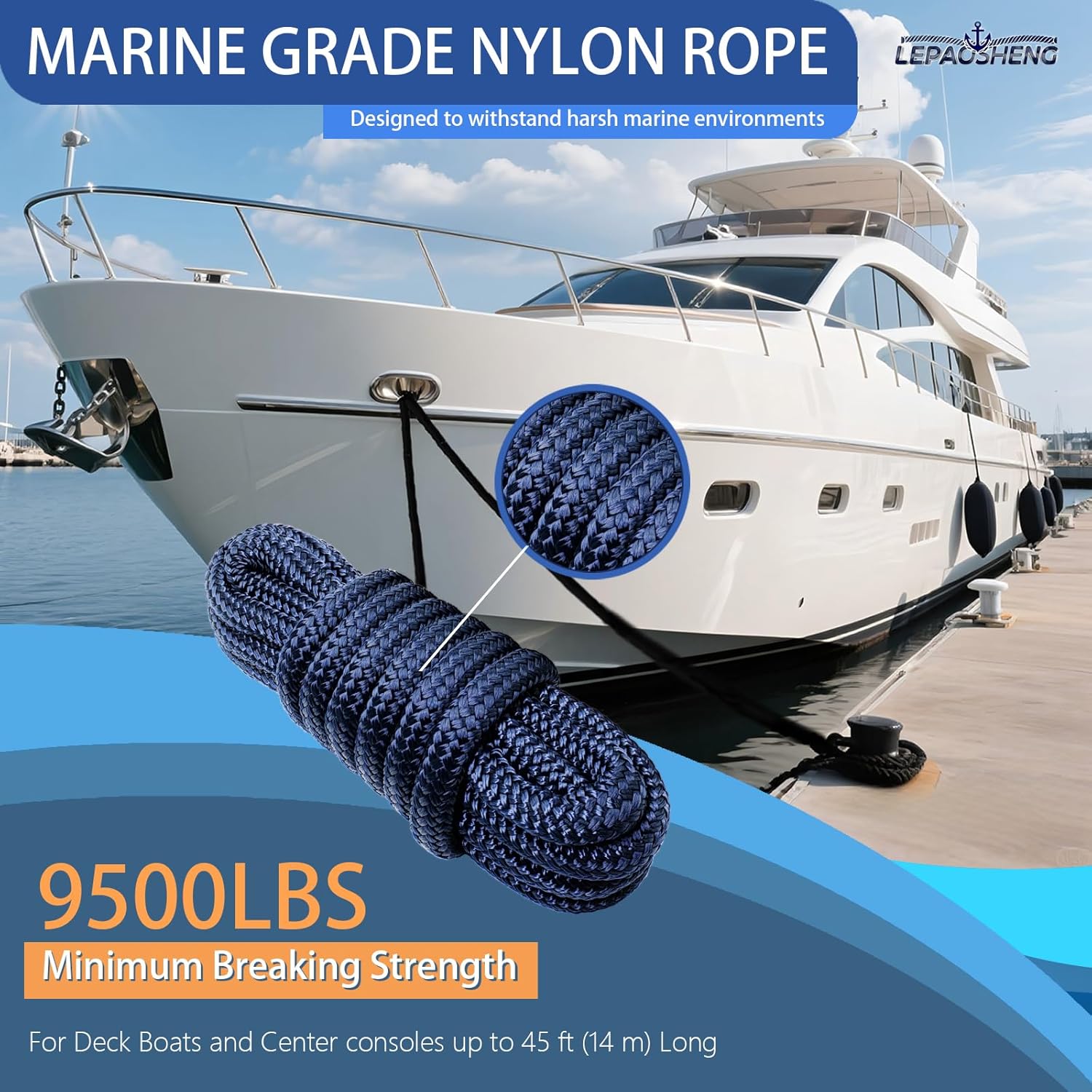 • Double-Braided and Heat-Sealed Ends: Lepaosheng premium nylon boat docking lines & ropes are professionally whipped and heat-treated at the ends, ensuring exceptional durability and long lasting, also preventing fraying or unravelling. Perfect for marinas, piers, or rough-water anchoring.