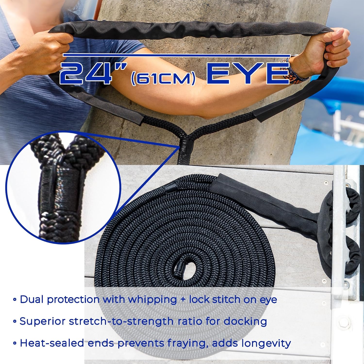 Confident docking begins with dependable lines—and Sailors Locker delivers just that. Engineered from rugged double-braided nylon and designed with a reinforced 24" chafe-protected eye loop, this 5/8" x 25' dock line set is ideal for all vessels up to 45 feet. With a 5200kg (over 11,400 lbs) breaking strength, flexible construction, and resistance to sun, salt, and friction, these mooring lines adapt to every docking scenario. Whether you're securing a sailboat, yacht, or fishing boat, each rope blends form and function with style in three distinct color options. When it’s time to tie down, trust Sailors Locker to hold strong through every tide and every journey.
