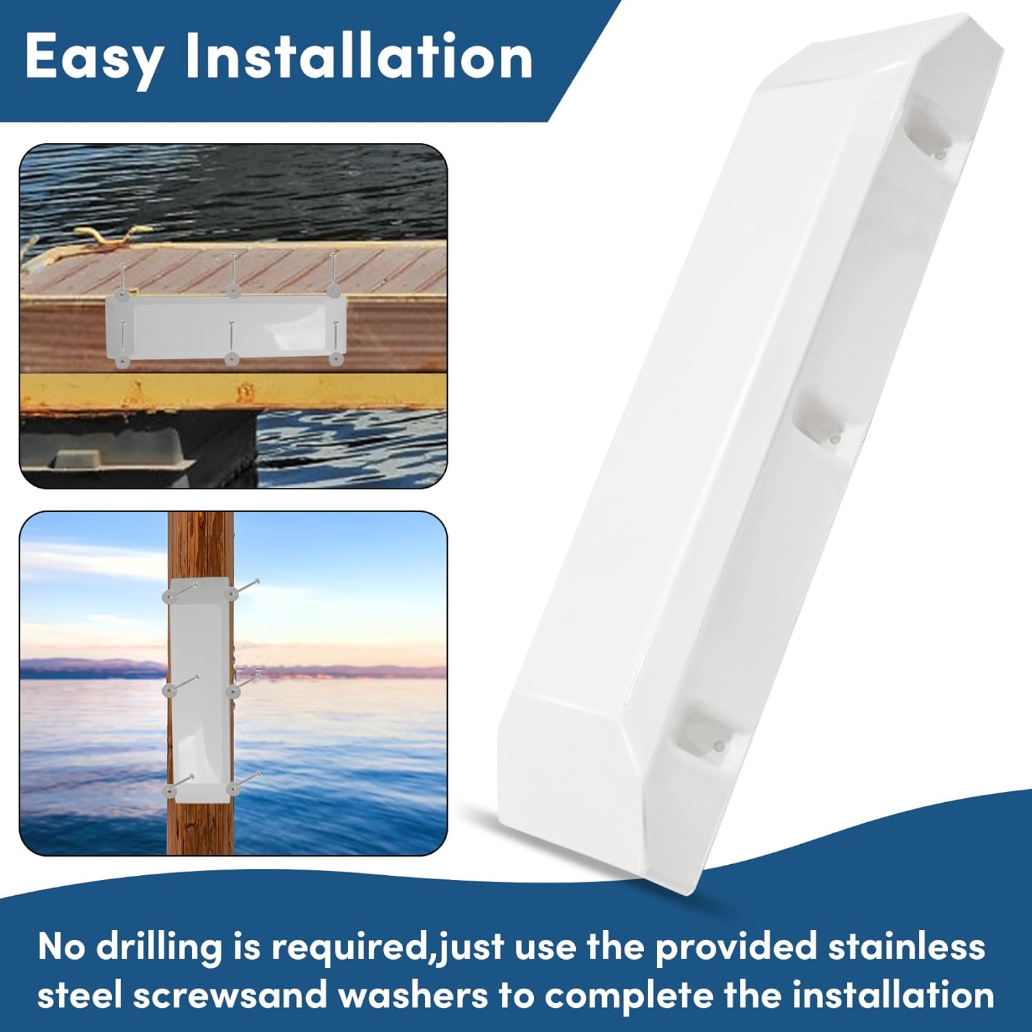 Product Description:dock bumper,Dock Bumper GuardProduct Material: PVCProduct Color:White,BlackProduct Installation:Align the boat dock fender with the position to be installed, then drill holes in the corresponding position, and fix it with screws.