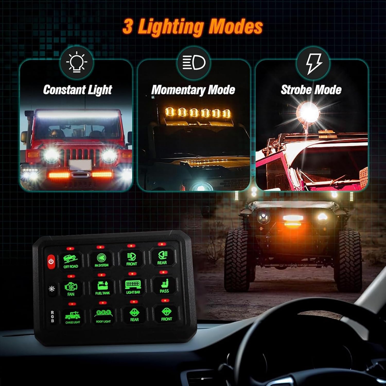 Spec: Item Type: Switch Panel Material: ABS, Silicone Voltage: 12-24VDC Power: 960W 12V, 1920W 24V Maximum Current: 80A Operating Temperature: -40°C-85°C 12 Gang Box: Line 1: 30A Line 2: 30A Line 3: 20A Line 4: 15A Line 5: 10A : 10A Line 7: 30A Line 8: 30A Line 9: 20A Line 10: 15A Line 11: 10A Line 12: 10A How to Use: Use as described in the manual. Package List: 1 x 12 Gang Switch Panel 1 x Circuit Control Box 1 x 100A Circuit Breaker 3 x Wiring Harness 10 x Ties 5 x Mounting Brackets 18 x Mounting Screws 2 x Nuts 2 x Gaskets 1 x Wrench 5 x 1 x Sticker 1 x Manual