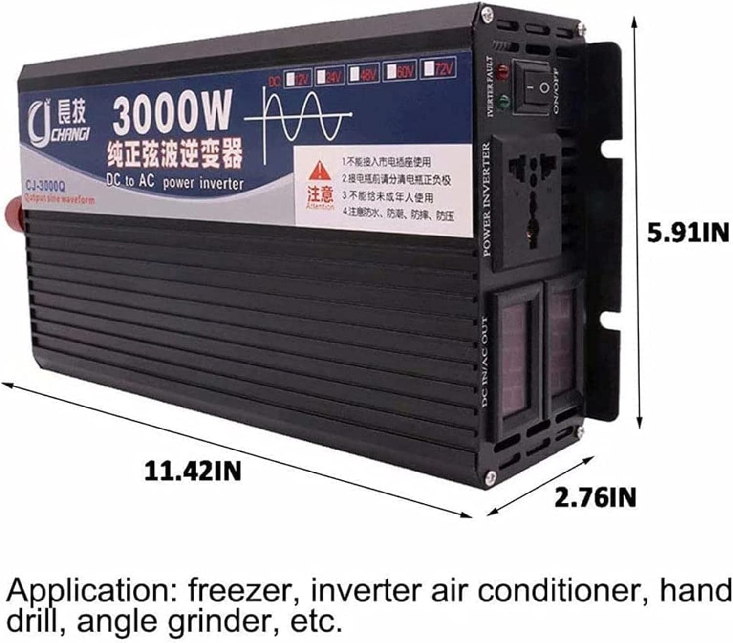 Colour Name: 48v Features: Necessities for road trips, holidays, outdoor activities, emergency kits, etc. Provide you with 100% real inverters. Pure sine wave inverters are widely compatible to supply power for TVs, satellites, game systems, tablets, mobile phones, CPAP, refrigerators, freezers, etc. in RVs, cars, trucks, semi-trailers, tractors, boats, etc. Specification: Name: Inverter Output voltage waveform: pure sine wave Material: Aluminum Magnesium Alloy Continuous output: 1500W Peak output: 3000W Features: High-quality electronic software Applications: Printers, rice cookers, laptops, computers, electric lights, refrigerators, TVs, etc. Safety protection: undervoltage protection, overvoltage protection, overcurrent protection, overload protection, short circuit protection, reverse connection protection, overheating protection.