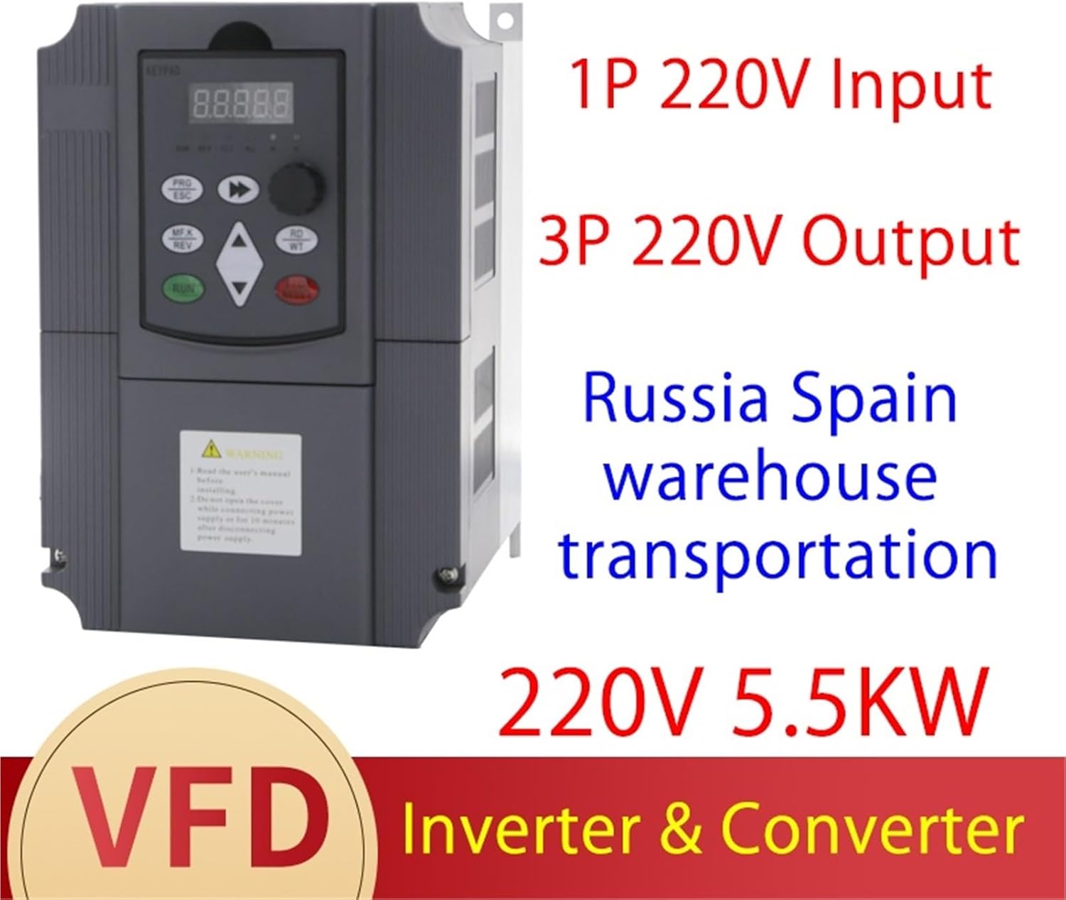 Inverters220V to 380V or 220V 7.5KW 11KW 3 Phase Output Frequency Converter / Adjustable Speed Drive / Frequency InverterProduct detailsOur product technologyA.Terminal wiring diagram of our products1.This Serial model has 4-20ma or 0-10V analog Input Functio.2.Support Pump 220V 3-Phases Motor, can connect pressure sensor for constant pressure control.3 Support Motor;you can set P0-10=P0-12=P0-08=P1-04=400HZ ,Set P0-15=9 Carrier Frequency set High level parameter.4 Support Replay Output (inside Relay)5 Support PID function (Constant Pressure 3-Phass Pump Motor)Our products have powerful functions.A. Current limiting function-Avoiding Frequent Over-current Alarm of Frequency Converter.B.Power dip ride through-Instantaneous power outage time converter will not shut down.C.Simple Programming-It can achieve up to 16-segment speed operation.D.Multiple Protection of Motor-Short-circuit, phase-absence, over-current, over-voltage, under-voltage, over-heat, over-load protection, etc.wiring diagram 220V 0.75KW-2.2KW220V 0.75KW220V 1.5KW220V 2.2KWModel NO.WK-0007-M1TWK-0015-M1TWK-0022-M1TInput voltageSingle phase 220V±15% 50Hz/60HzOutput voltageThree phase 0-220V 0-650HzPower0.75KW/1HP1.5KW/2HP2.2KW/3HPRated current3.7A7A10AShape size155*82*135 mmpacking size220*150*130 mmWeight1.2KGwiring diagram 220V 4KW220V 4KWModel NO.WK-0040-G1TInput voltageSingle phase 220V±15% 50Hz/60HzOutput voltageThree phase 0-220V 0-650HzPower4KW/5HPRated current16AShape size170*130*160 mmpacking size225*190*230 mmWeight2KGwiring diagram 220V 5.5KW-7.5KW220V 5.5KW220V 7.5KWModel NO.WK600-0055-G1TWK600-0075-G1TInput voltageSingle phase 220V±15% 50Hz/60HzOutput voltageThree phase 0-220V 0-650HzPower5.5KW/8HP7.5KW/10HPRated current20A30AShape size220*152*179 mmpacking size280*205*245 mmWeight3.3KGTYPE SELECTION TABLE220V to 380V/0.75KW220V to 380V/1.5KW220V to 380V/2.2KWModel NO.WK600D-0007-G1T3WK600D-0015-G1T3WK600D-0022-G1T3Input voltageSingle phase 220V±15% 50Hz/60HzOutput voltageThree phase 0-380V 0-650HzPower0.75KW/1HP1.5KW/2HP2.2KW/3HPRated current2.5A3.7A5AShape size155*82*135(145)mmpacking size220*150*130 mmWeight1.2KG220V to 380V/4KW220V to 380V/5.5KWModel NO.WK600D-0040-G1T3WK600D-0055-G1T3Input voltageSingle phase 220V±15% 50Hz/60HzOutput voltageThree phase 0-380V 0-650HzPower4KW/5HP5.5KW/7.5HPRated current8.5A13AShape size170*130*160packing size225*190*230Weight2.2KG220V to 380V/7.5KW220V to 380V/11KWModel NO.WK600D-0075-G1T3WK600D-0110-G1T3Input voltageSingle phase 220V±15% 50Hz/60HzOutput voltageThree phase 0-380V 0-650HzPower7.5KW/10HP11KW/15HPRated current16A25AShape size220*148*170packing size280*205*245Weight3.3KGis_customized : YesOutput Current : 2.5A/4A/7A/10A/16A/20A/30AOutput Frequency : 0-600HzModel Number : WK600/WK600DOutput Power : 0.4kw/0.75kw/1.5kw/2.2kw/4kw/5.5kw/7.5kwType : DC/AC InvertersWeight : 2KGSize : 160*80*135Output Type : TripleInput Voltage : Single phase 220VOutput Voltage : Three-phase 220V/Three-phase 380VControl Mode : Open loop vector control(SVC) V/F control24V Output Voltage : Yes10V Output Voltage : YesRelay output : Normally open and normally close