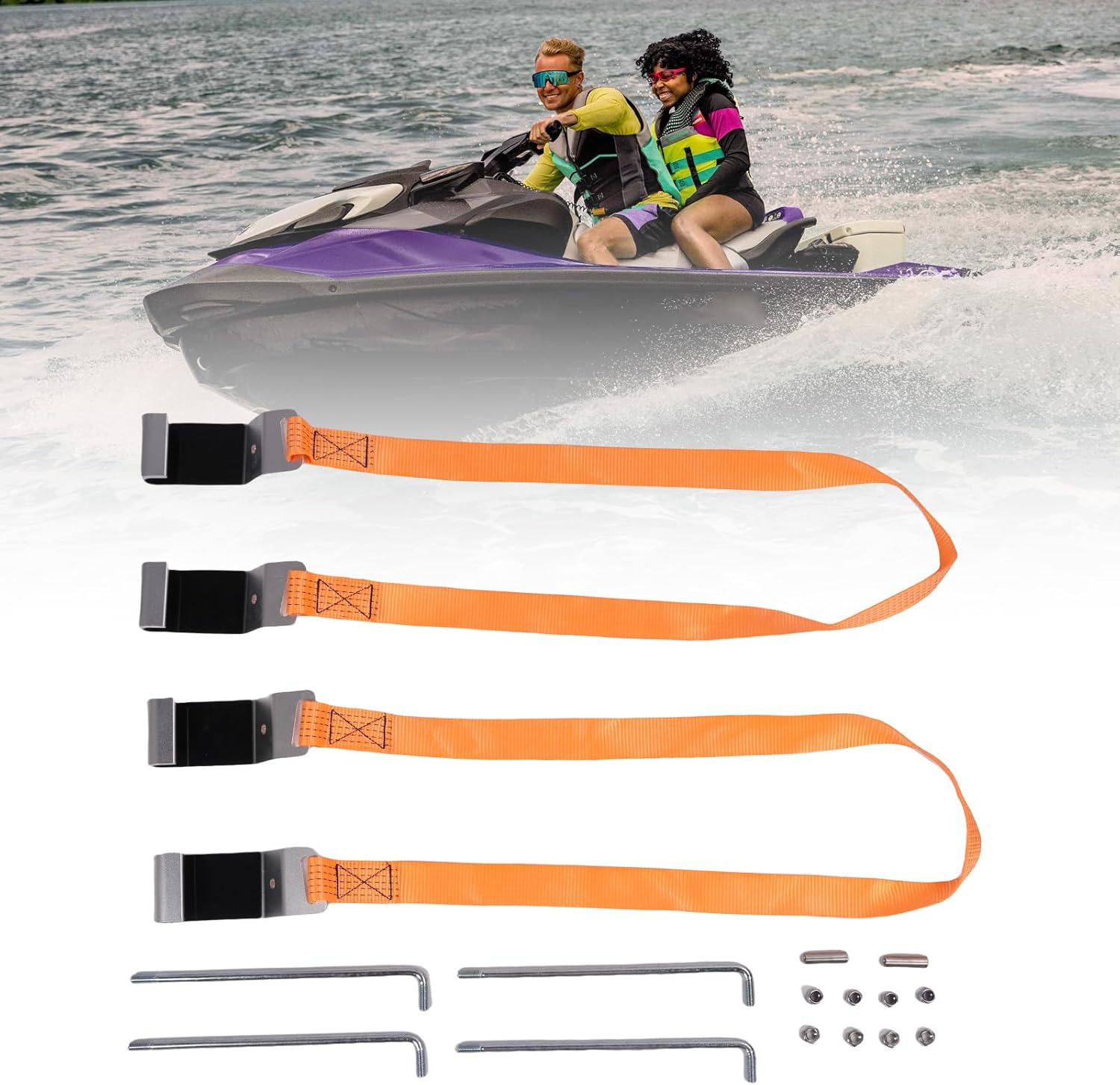 Specification: Item Type: Motorboat Hanger Fitment: Suitable for Motorboat, Jet Ski packing list: 2 x Portable Motorboat Hanger (16Pcs Accessories) Notice: Before lifting, sure to place the lifting bracket in the correct position on both sides of the machine. Always conduct a test first to ensure excellent balance, it is worth taking a little extra time for this. Once you have found the optimal lifting position, mark it. This will the next lifting easier