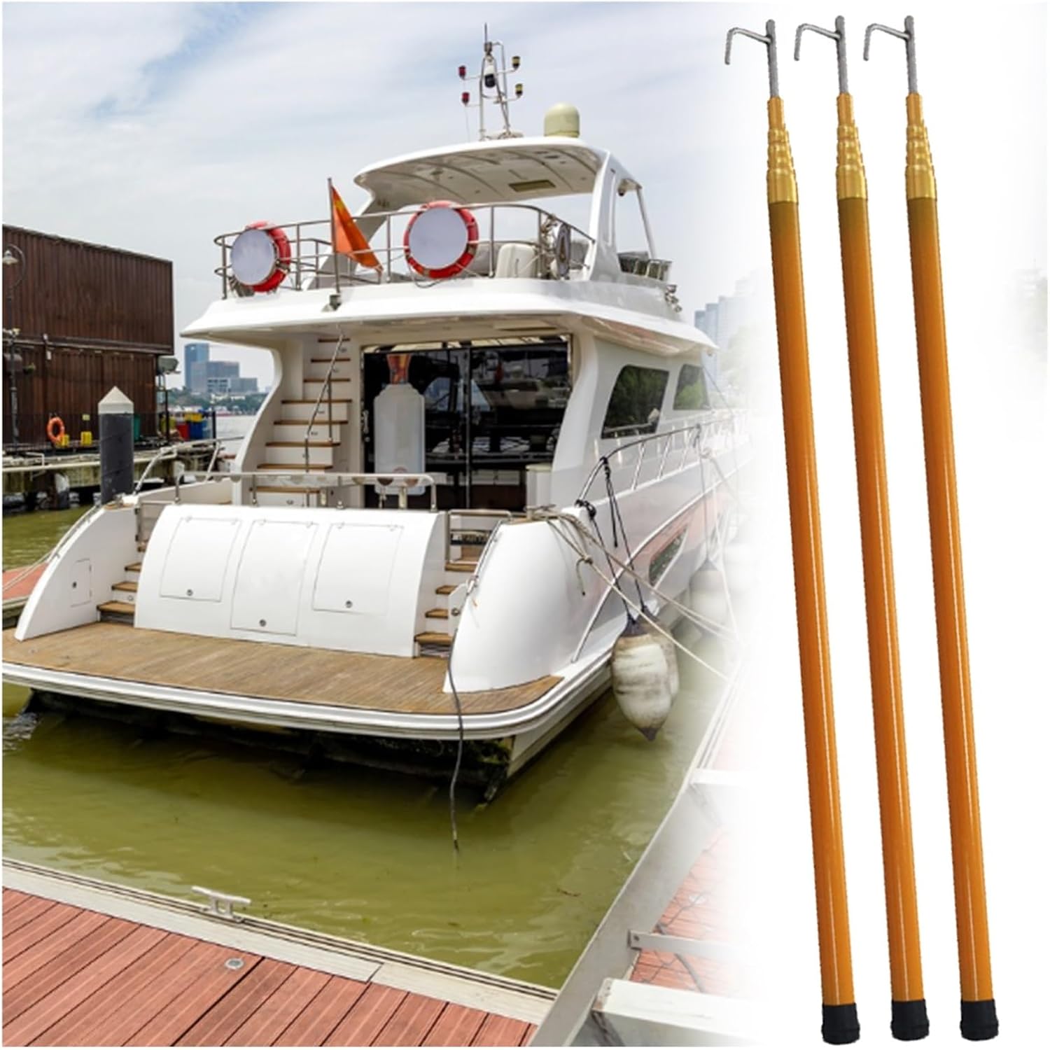 ▼ Are you still having trouble docking your boat? Our product allows you to dock easily, our this telescopic pole allows you to easily extend and secure your boat to the dock, and also reach out to distant ropes and objects in the water.▼ Specification:- Product Name: Boat Hook- Rod Material: Fiberglass- Hook Material: 304 Stainless Steel- Hook Opening: 6.3cm(2 4/9 inch)- Number of Sections: 4, 5, 6- Pole length: 4m(13.1 ft) - Shortened:1.2m(3.9 ft), 5m(16.4 ft) - Shortened:1.23m(4 ft), 6m(19.7 ft) - Shortened:1.26m(4.1 ft)- Shortened to push/pull: 180 kg/396 lbs of pressure- Fully extended to push/pull: 100 kg/220 lbs of pressure- Uses: boat docking, water rescue, picking up things that fall into the water, pushing and pulling cargo, hanging lights from trees and using it in the truck to get things stuck in the front of the truck bed▼ Features:- Great for on-the-go. Easy to use.- Rotatable locking, fixed in any position, easy to use.- Round hole at the bottom to remove water from the tube.- The long pole is very sturdy even when fully extended and telescopes freely.- Put it on your boat or in the trunk of your car for easy transportation and storage.- Can be used for docking, rescuing, pushing, pulling, boating, holding lights or wires, and just about anything else you can think of.▼ Package Includes:- Boat Hook▼ Notes:- After use in seawater to dry the salt water on the boat hook.- The color may exist a slight difference due to different screen displays.- Due to manual measurement, there may be 1 cm error. Thank you for your understanding.- When not in use, store the safety hook in a dry and safe place to maintain its quality and prolong its service life.