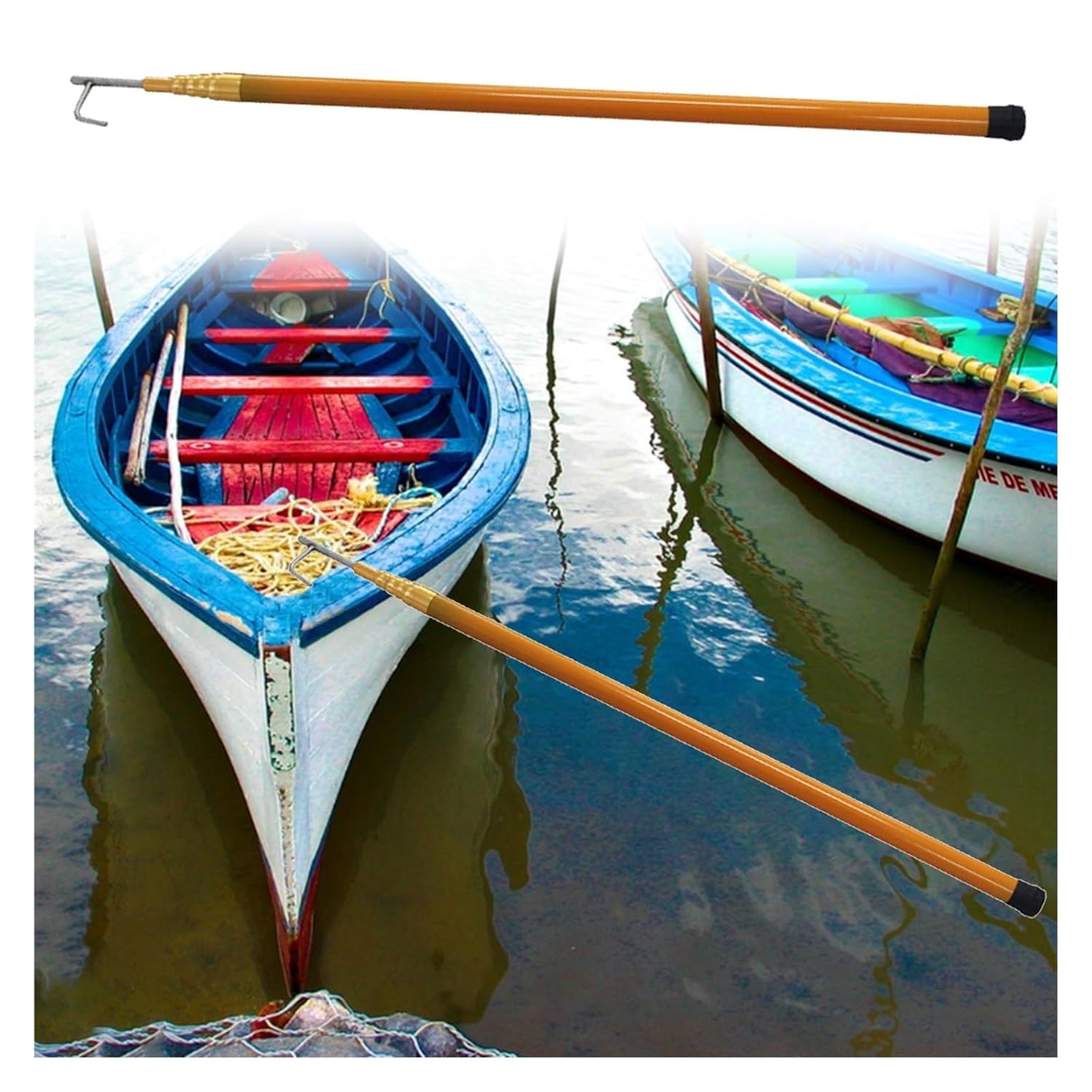 Are you still having trouble docking your boat? Our product allows you to dock easily, our this telescopic pole allows you to easily extend and secure your boat to the dock, and also reach out to distant ropes and objects in the water.Specification:Product Name: Boat HookRod Material: FiberglassHook Material: 304 Stainless SteelHook Opening: 6.3cm(2 4/9 inch)Number of Sections: 4, 5, 6Pole length: 4m(13.1 ft) Shortened:1.2m(3.9 ft), 5m(16.4 ft) Shortened:1.23m(4 ft), 6m(19.7 ft) Shortened:1.26m(4.1 ft)Shortened to push/pull: 180 kg/396 lbs of pressureFully extended to push/pull: 100 kg/220 lbs of pressureUses: boat docking, water , picking up things that fall into the water, pushing and pulling cargo, hanging lights from trees and using it in the truck to get things stuck in the front of the truck bedFeatures:Great for onthego. Easy to use.Rotatable locking, fixed in any position, easy to use.Round hole at the bottom to remove water from the tube.The long pole is very sturdy even when fully extended and telescopes freely.Put it on your boat or in the trunk of your car for easy transportation and storage.Can be used for docking, rescuing, pushing, pulling, boating, holding lights or wires, and just about anything else you can think of.Package Includes:Boat HookNotes:After use in seawater to dry the salt water on the boat hook.The color may exist a slight difference due to different screen displays.Due to manual measurement, there may be 1 cm error. Thank you for your understanding.When not in use, store the hook in a dry and safe place to maintain its and prolong its service life.