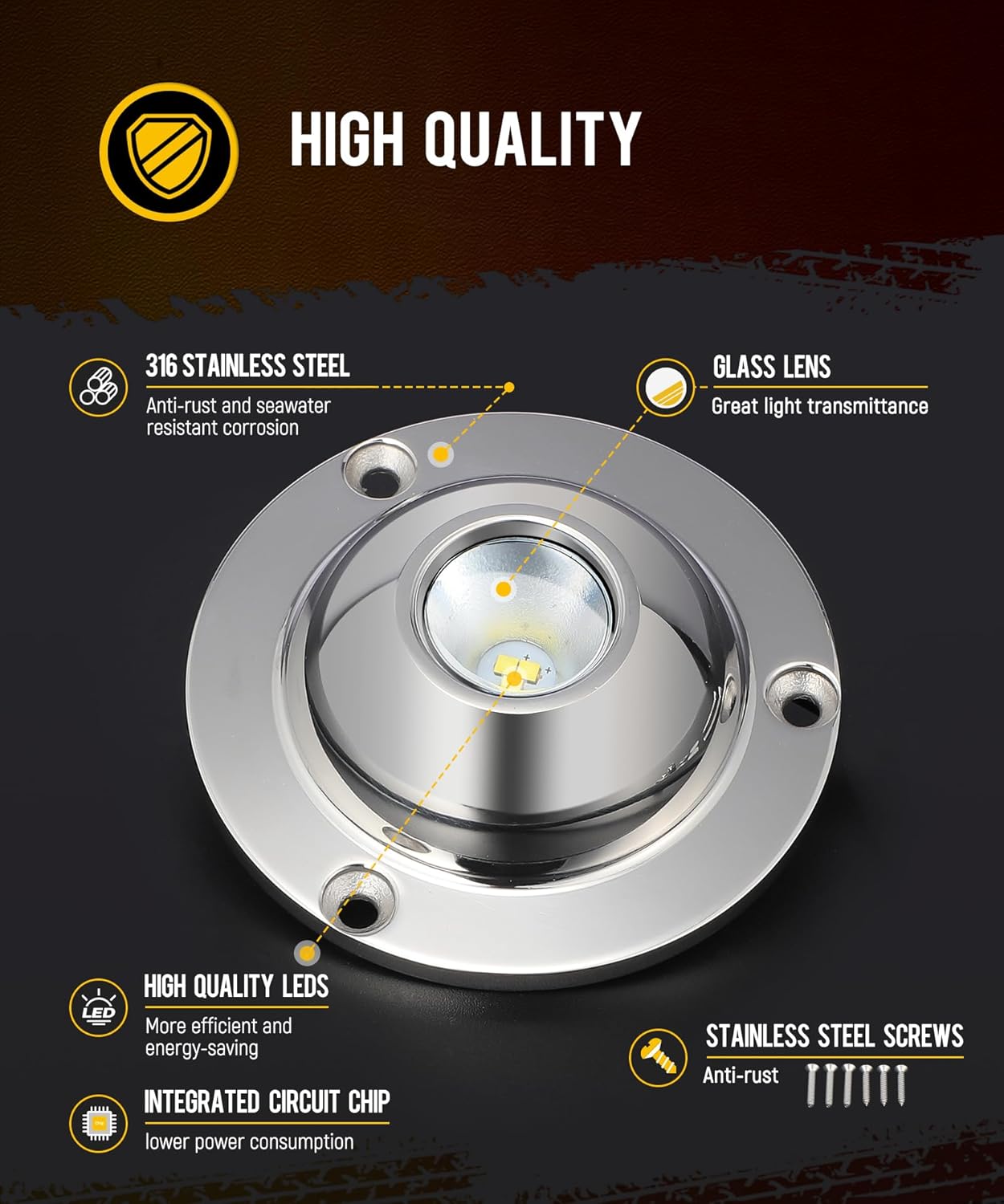 | Light Source Special Features | IP68 Waterproof, Corrosion Resistant, Marine Grade, Wide Voltage Range (10V-30V), Surface Mountable |