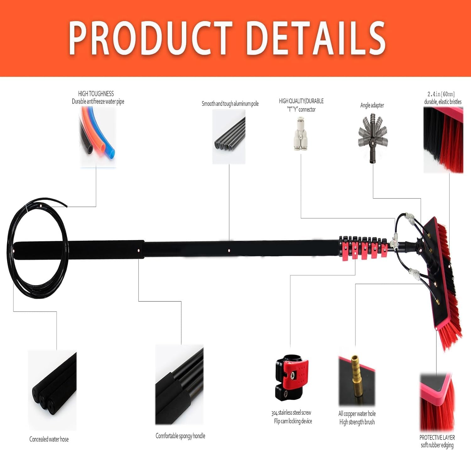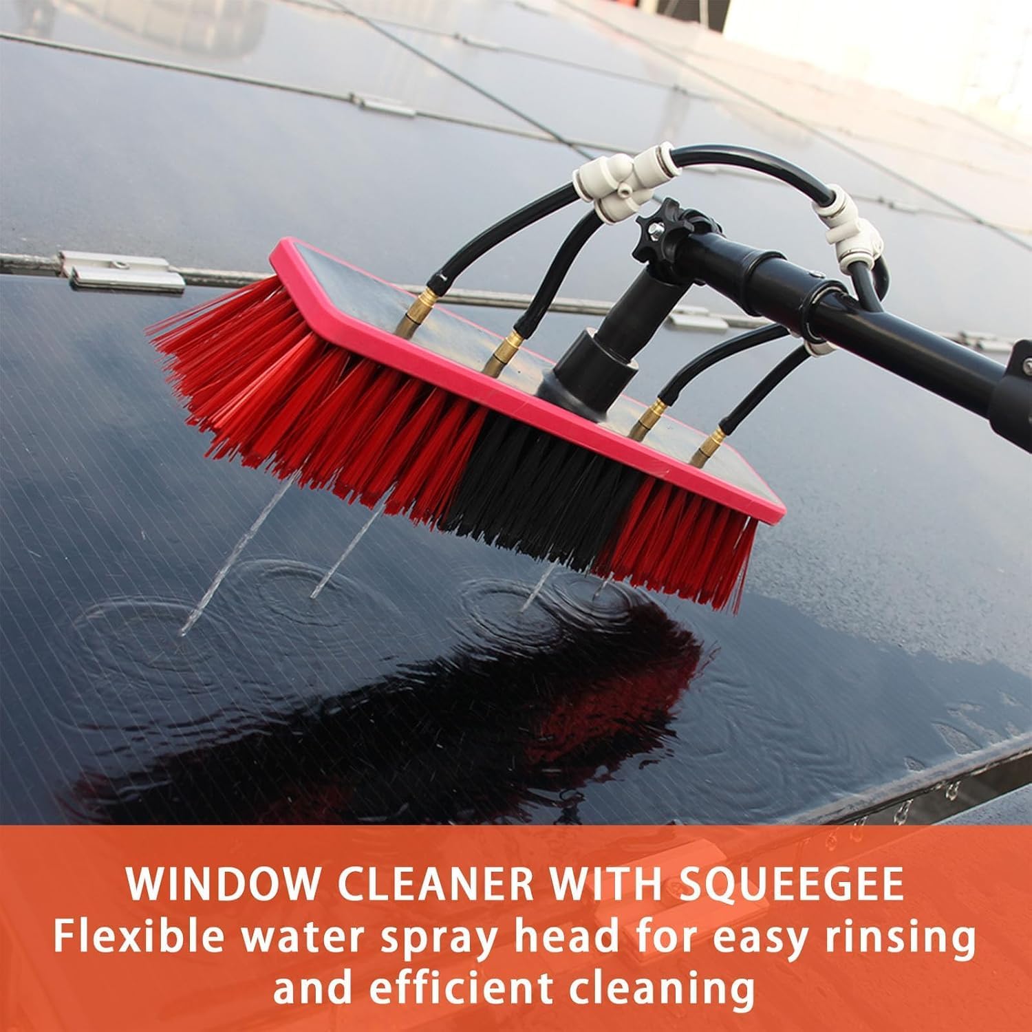 Introducing the Telescopic Brush - an Extendable Water-Fed Cleaning Pole (3.6 - 10.8 m) that redefines efficiency and convenience in cleaning. This innovative tool features an Adjustable Angle & Soap Dispenser, making it an essential addition to any home or business cleaning arsenal. **FEATURES** - **Versatile Cleaning Tool:** Designed for high-level cleaning tasks, this water-fed pole excels at cleaning solar panels, windows, house siding, vehicles, driveways, decks, patios, and even during snow removal. Eliminate the need for ladders and enjoy the ease of accessing hard-to-reach areas from the ground. - **Lightweight and Durable:** Made from high-quality aluminum, this cleaning pole strikes the perfect balance between strength and portability. The nonslip, soft sponge-covered handle ensures a comfortable grip, while the telescopic design allows for quick adjustments to reach any height with ease. - **Effective Deep Cleaning:** Equipped with four water outlet holes at the brush head, this tool delivers a strong water flow alongside a built-in soap dispenser, efficiently removing dirt and grime from surfaces. - **180° Rotatable Brush Head:** Featuring soft PP bristles, the brush head rotates 180°, enabling you to clean at various angles from the ground. This functionality enhances versatility and ensures comprehensive cleaning in every corner. - **Easy Connection:** Connecting the extendable water-fed pole to your pure water system or garden hose is straightforward, providing seamless operation for all your cleaning requirements. **PRODUCT PARAMETERS:** Water hose length: 20M Brush width: 35CM Specifications: 3.6M, 5.4M, 6M, 7.2M, 9.2M, 10.8M Crafted for durability and performance, the Telescopic Brush is your go-to solution for transforming your cleaning routine. Experience the difference today!