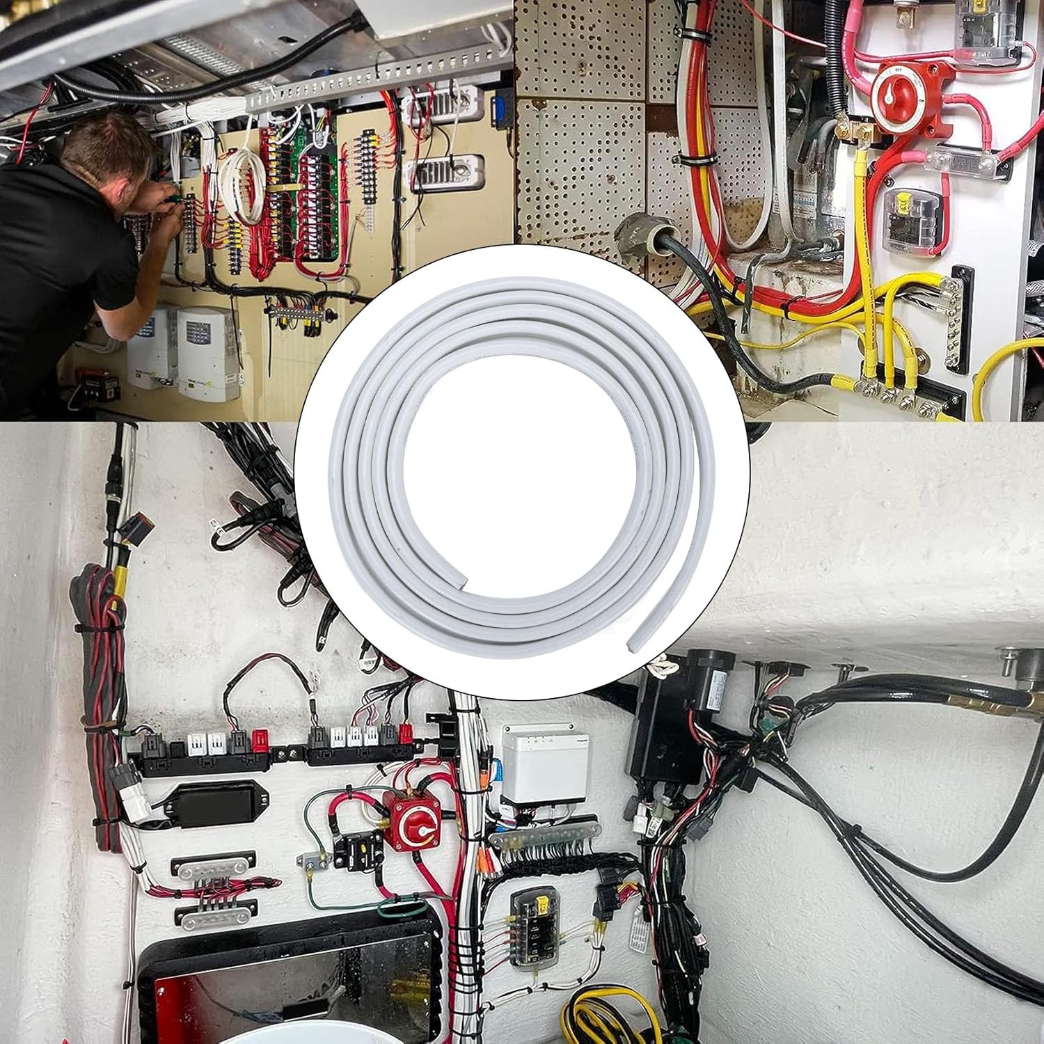 1. EFFICIENT COPPER CONDUCTOR: 8 Gauge boat cable ensures higher conductivity due to high purity OFC material, ensuring efficient and stable current transfer. 2. ENDURING INSULATION: Professional grade insulation material provides wearproof, waterproofing features, ensuring long lasting durability in extreme marine and outdoor environments. 3. FLEXIBLE APPLICATION: Whether for the wiring needs of marine electronic equipment or the power system installation of caravans, the wire can adapt flexibly to meet your diverse requirements. 4. HIGH PERFORMANCE: Rigorous certification demonstrates cable's outstanding performance in safety and quality, allowing you to use it with peace of mind. 5. PREMIUM DESIGN: Boat wire is made of high grade OFC and PVC, ensuring excellent electrical conductivity, anti aging, high flexibility and stability for long lasting performance. Spec: Item Type: Marine Cable Design: 8 Gauge, 8AWG Material: OFC, PVC Length: 10ft Voltage Rating: 600V Operating Temperature Range: -40°F to 221°F (-4.44℃ to 105℃) Application: For boat, yacht, trailer, fish finder, truck RV, Van, ATV trailer electrical systems: wiring lights (spotlights, underwater lights, floodlights, navigation lights, headlights), solar inverters, shore power, bilge pumps, extending new charging lines, speaker wires, electric brake lines, radio stereo, alarms, etc. Fitment: Suitable for boat, yacht, camping vehicle, trailer and more Package List: 1 x Cable