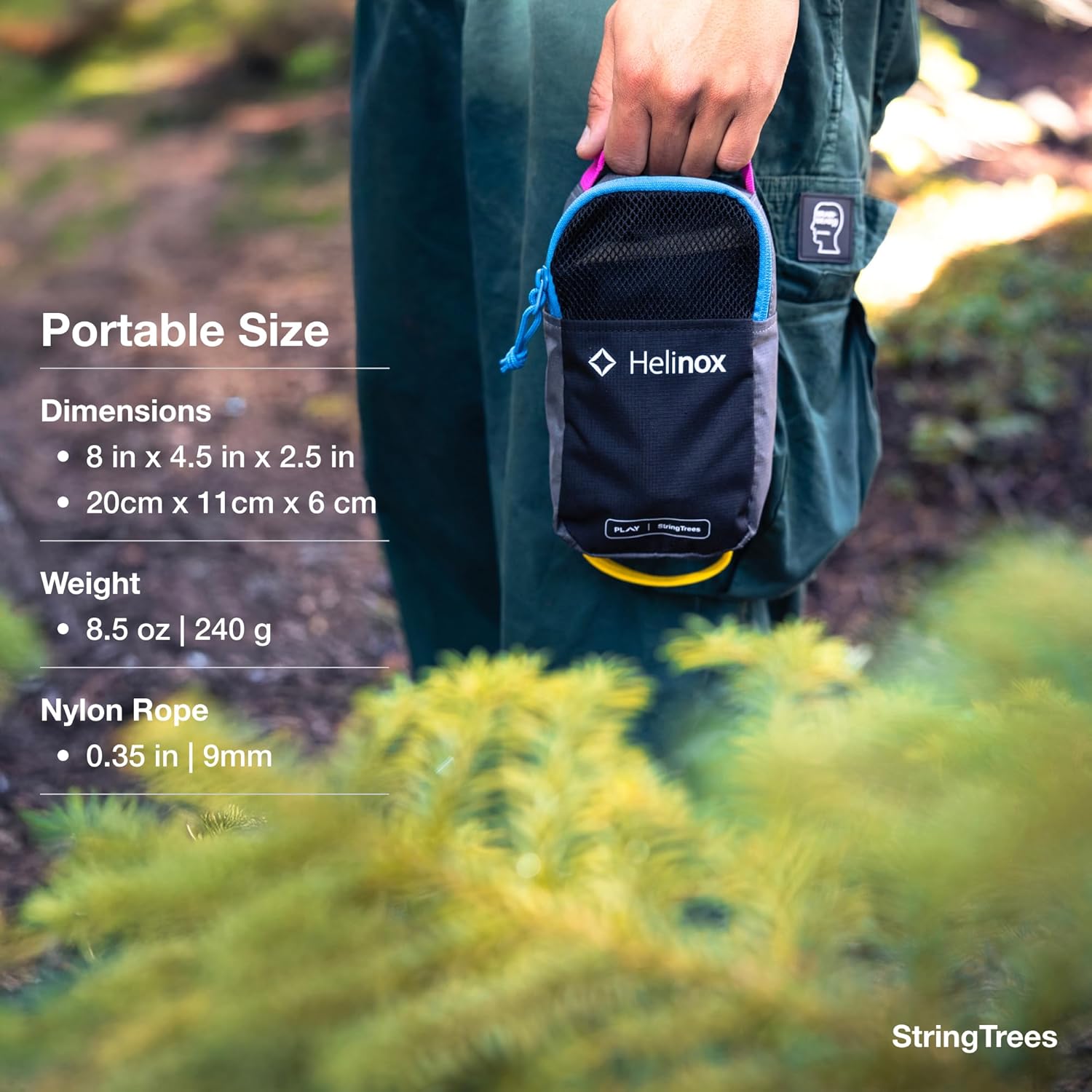 Helinox StringTrees is a portable and packable outdoor game that puts a backcountry twist on shuffleboard, blending finesse, accuracy, and competitive fun. Players take turns sliding metal rings down a rope, aiming to land in one of three scoring zones or knock their opponent’s rings out of position. Zone one (blue) is worth one point, zone two (purple) is worth two points, and zone three (yellow) is worth three points. The first team to reach 21 points wins, provided they lead by at least two points. Designed for versatility, StringTrees requires two sturdy attachment points between 14-20 feet (4.3-6.1 m) apart, such as trees, fence posts, vehicles, or poles. Weighing just 8.5 oz (240 g) and packing down to 8 x 4.5 x 2.5 inches (20 x 11 x 6 cm), it is lightweight and easy to bring along on any adventure. Crafted with the same durability found in all Helinox products, it features a 9mm nylon rope, nylon webbing, and eight metal rings built to withstand rugged environments. Designed for 2-6 players, StringTrees delivers quick, exciting gameplay that can be enjoyed anywhere. Backed by Helinox’s five-year warranty, it provides lasting fun wherever competition unfolds.