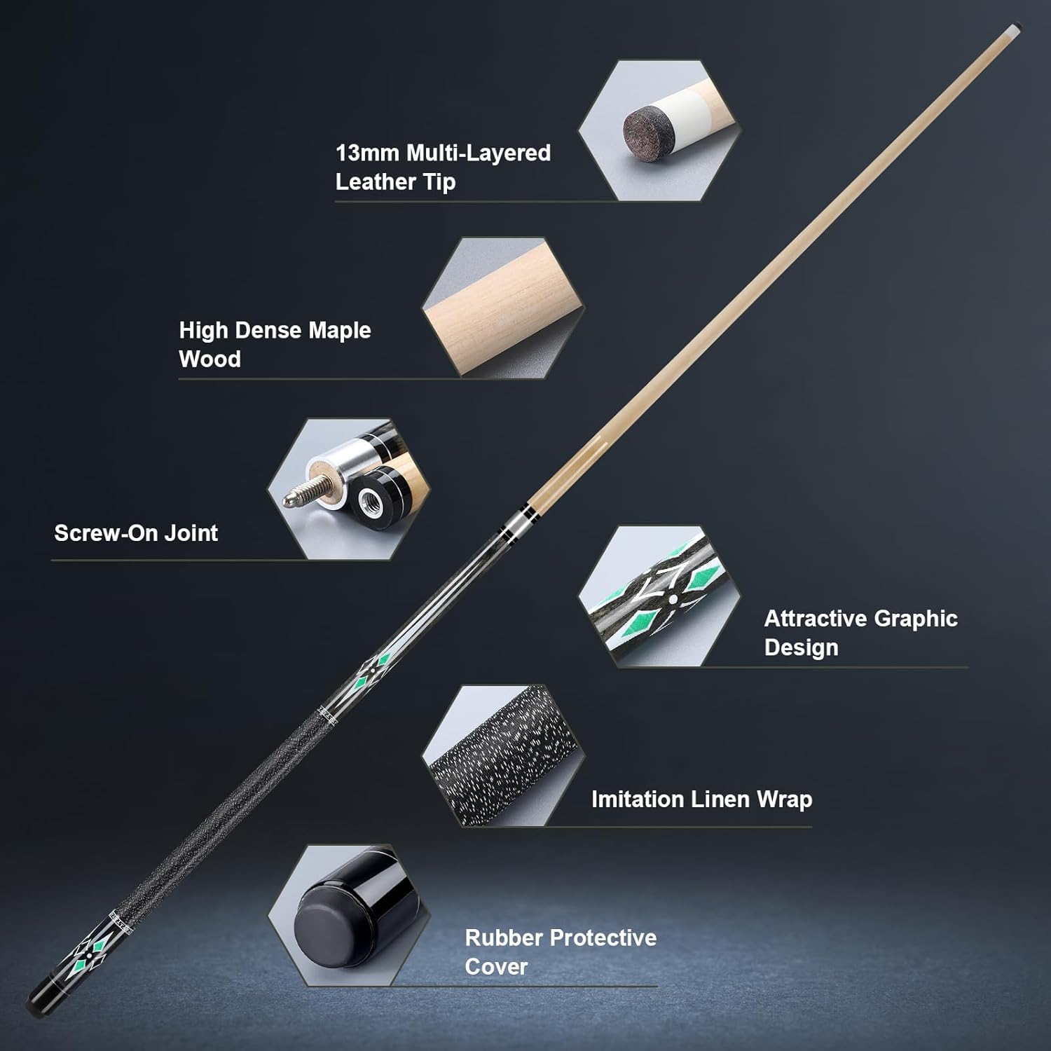 Elevate your billiards game with this premium 58-inch pool cue from Winucue. Crafted from high-quality Canadian maple wood, this professional-grade cue stick delivers exceptional performance and durability. Available in multiple weight options from 18 to 21 ounces, you can select the perfect balance for your playing style. The non-slip grip ensures precise control and consistent shots, while the classic design makes it suitable for both competitive players and recreational use. Whether you're breaking, making precision shots, or executing complex spin techniques, this versatile cue stick performs reliably in every situation. Perfect for use in bars, home pool tables, or billiard halls, this well-crafted instrument comes with a 2-month warranty. The sleek package dimensions of 58.0 x 2 x 2 inches make storage and transport convenient, while the robust construction promises lasting performance through countless games.
