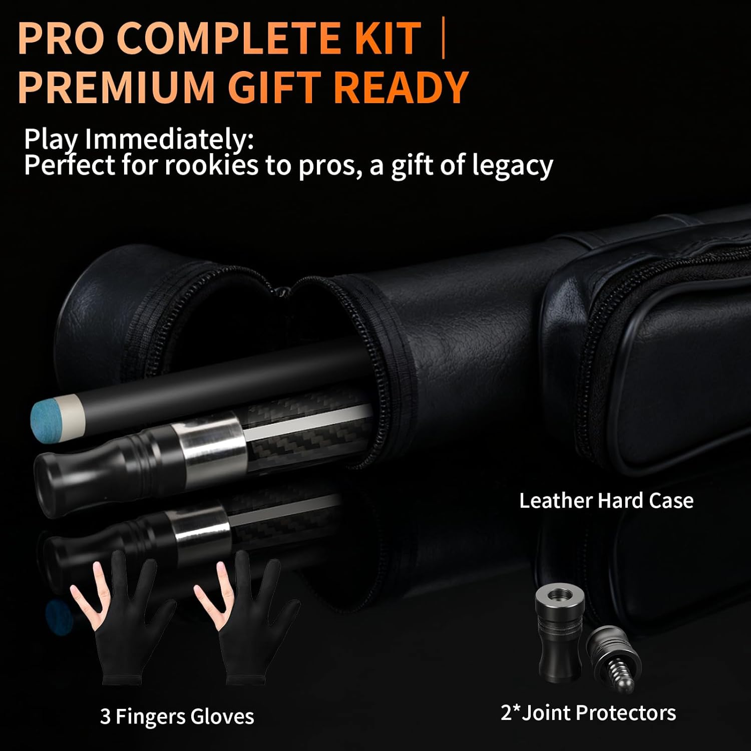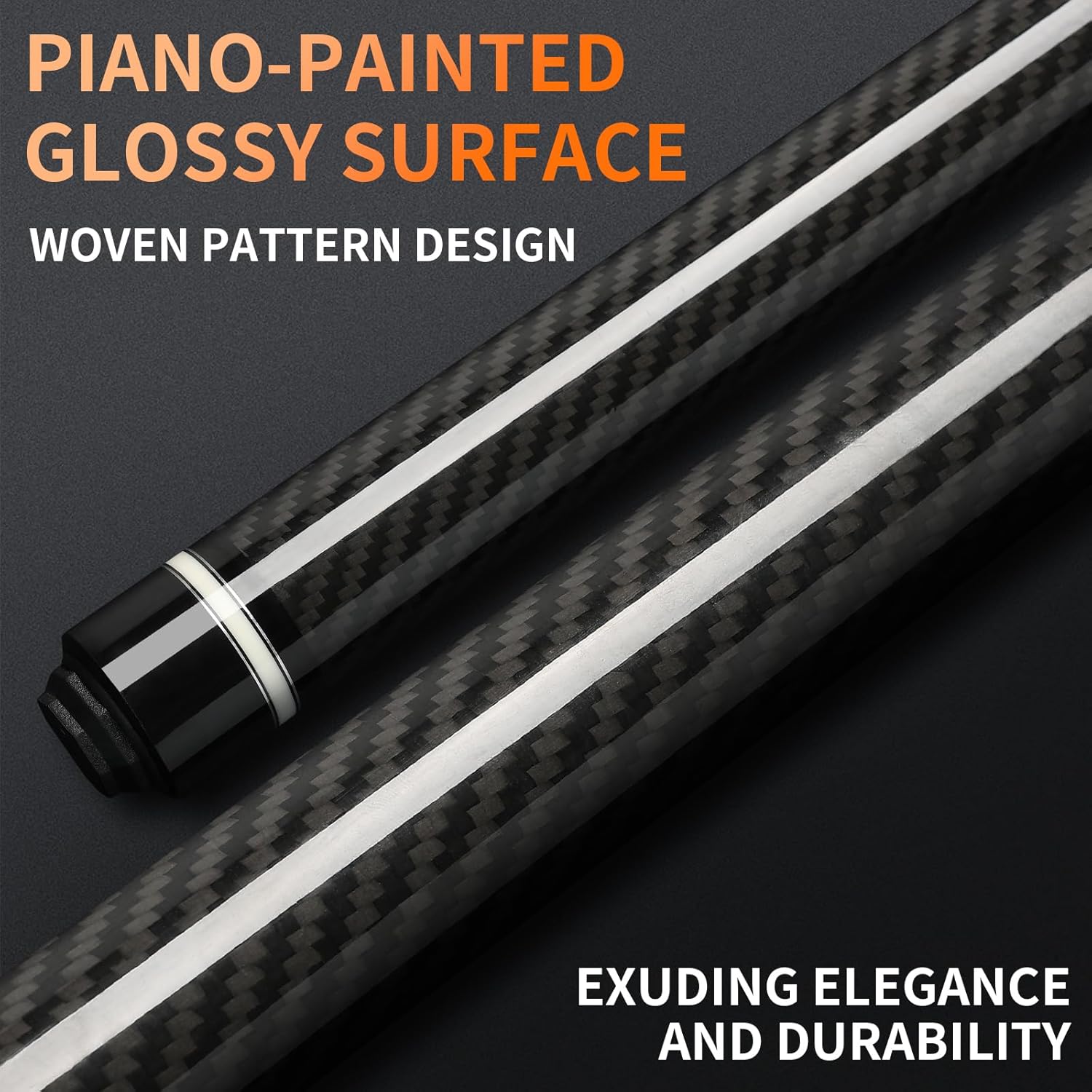 KMISE Carbon Fiber Pool Cue, 100% Carbon Fiber Shaft 58" Professional Low Deflection Pool Sticks for Adults Full Carbon Technology, 12.5mm Tip, 3/8-8 Joint Pin, 19.5-23oz, Professional Billiard Cue Stick