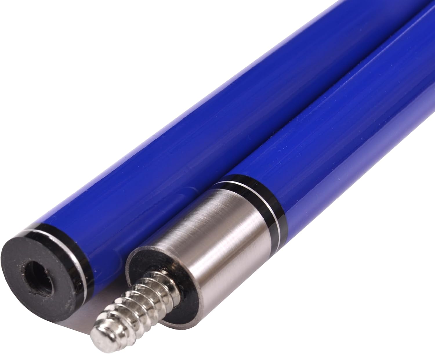 Made of fiberglass - 58" 2 piece fiberglass pool cue - billiard stick - Textured grip - 3/8 x 10 Steel joint -13mm fiber ferrule - Glue on leather tip - This listing for 4 cues - 1 of each weight 18, 19, 20 and 21 oz and 1 each color gray, red, blue and black