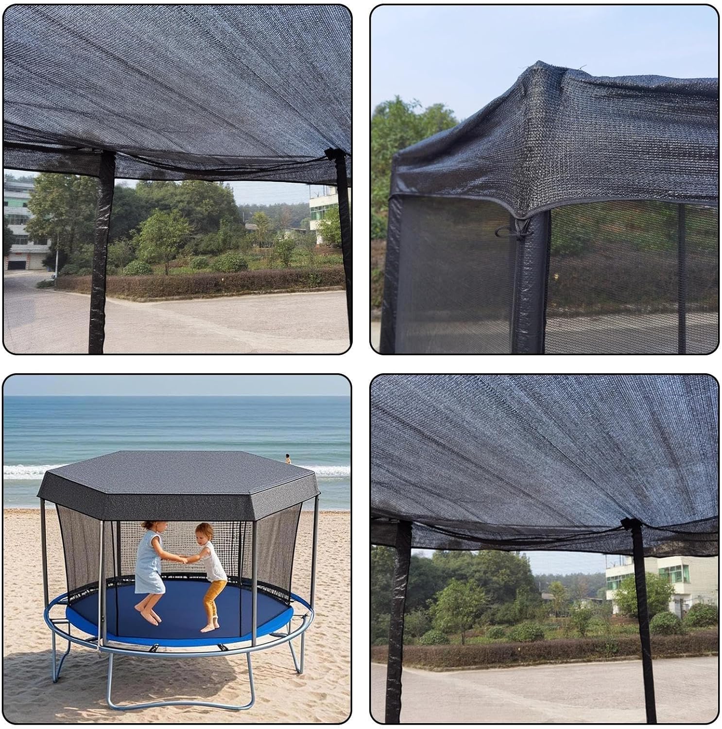 The trampoline canopy is a key addition to your outdoor recreational equipment, designed to improve safety and comfort during use. This protector blocks users from direct sunlight, while providing a shaded area for extended playtime in your garden, courtyard, or backyard. Perfect for placement on the lawn, patio, or playground, this canopy ensures a secure and enjoyable environment for children and adults alike. Its versatile design makes it suitable for various settings, including parks and open spaces where families gather to enjoy active moments. The trampoline canopy combines functionality with convenience, offering reliable coverage that complements your outdoor lifestyle. Ideal for enhancing your trampoline experience, this canopy is a thoughtful choice for family enjoyment in any outdoor setting.Specifications:Color: blackProduct Size and weight:6ft-6 pole: about 183cm/72.1 inches, Weight: 300g8ft-6 pole: about 244cm/96.14 inches, Weight: 400g10ft-6 pole: about 305cm/120.17 inches, Weight: 600g12ft-6 pole: about 366cm/144.2 inches, Weight: 1000g14ft-6 pole: about 427cm/168.24 inches, Weight: 1100g10ft-8 pole: about 305cm/120.17 inches, Weight: 600g12ft-8 pole: about 366cm/144.2 inches, Weight: 1000g14ft-8 pole: about 427cm/168.24 inches, Weight: 1100gMaterial: Thermoplastic ElastomerList (Optional)for 6-pole: 1x trampoline cover6x connecting ropes orfor 8-pole: 1x trampoline cover8x connecting ropes