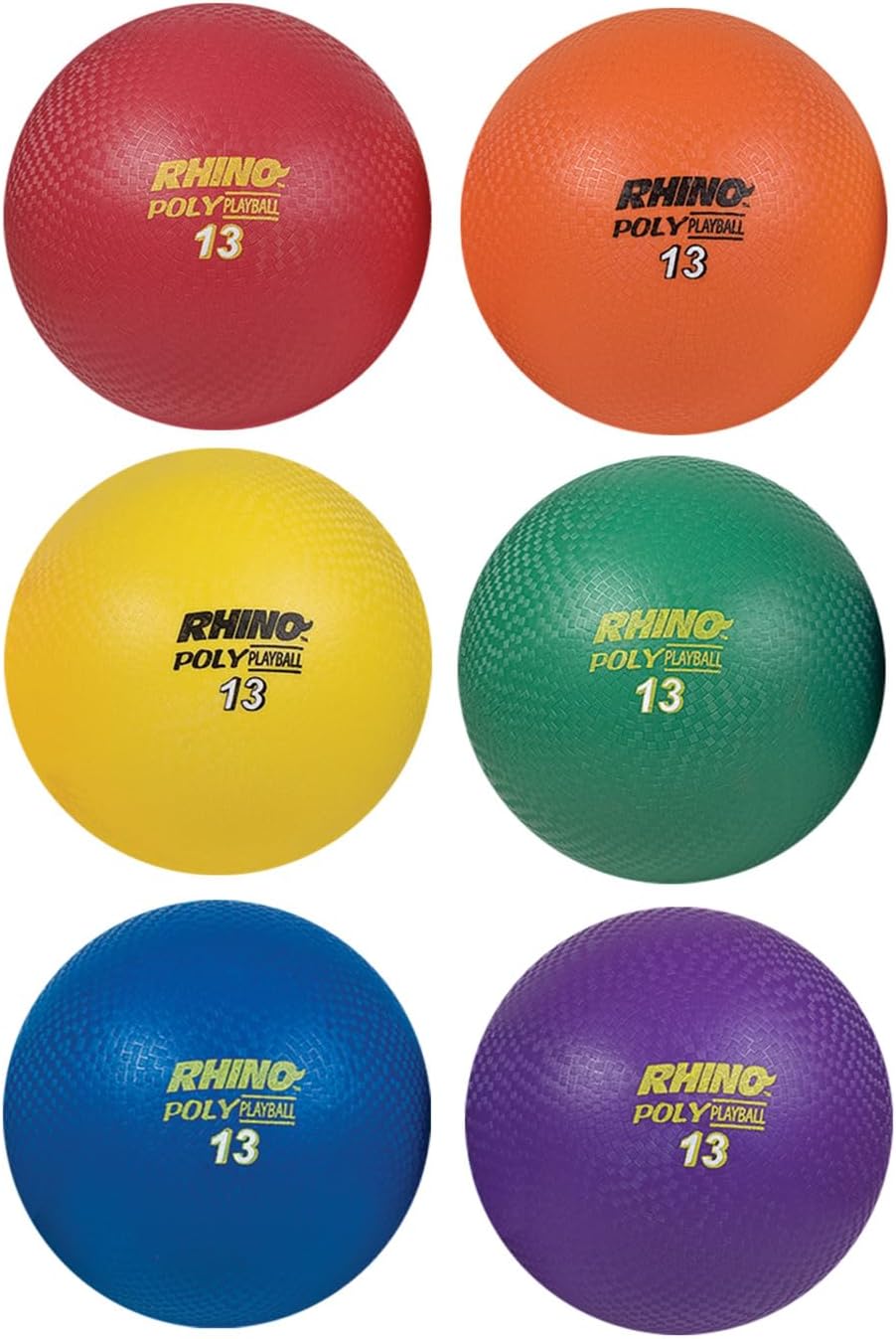 Designed for durability and endless fun, the Champion Sports Rhino® Poly Playground Ball Set is a perfect choice for schools and homes alike. The unique rotational molding process ensures these balls stay perfectly round, even with frequent use. Made from high-quality Rhino® Poly material, the seamless, bladderless design is virtually indestructible and won't leak air even if overinflated. With a textured cover that provides exceptional grip for easy throwing and catching, this set of six colorful balls (1 red, 1 orange, 1 yellow, 1 green, 1 royal blue, and 1 purple) is ideal for a wide range of playground games, gym class activities, or just tossing around with friends. Available in a variety of sizes to suit your needs. Balls ship deflated.
