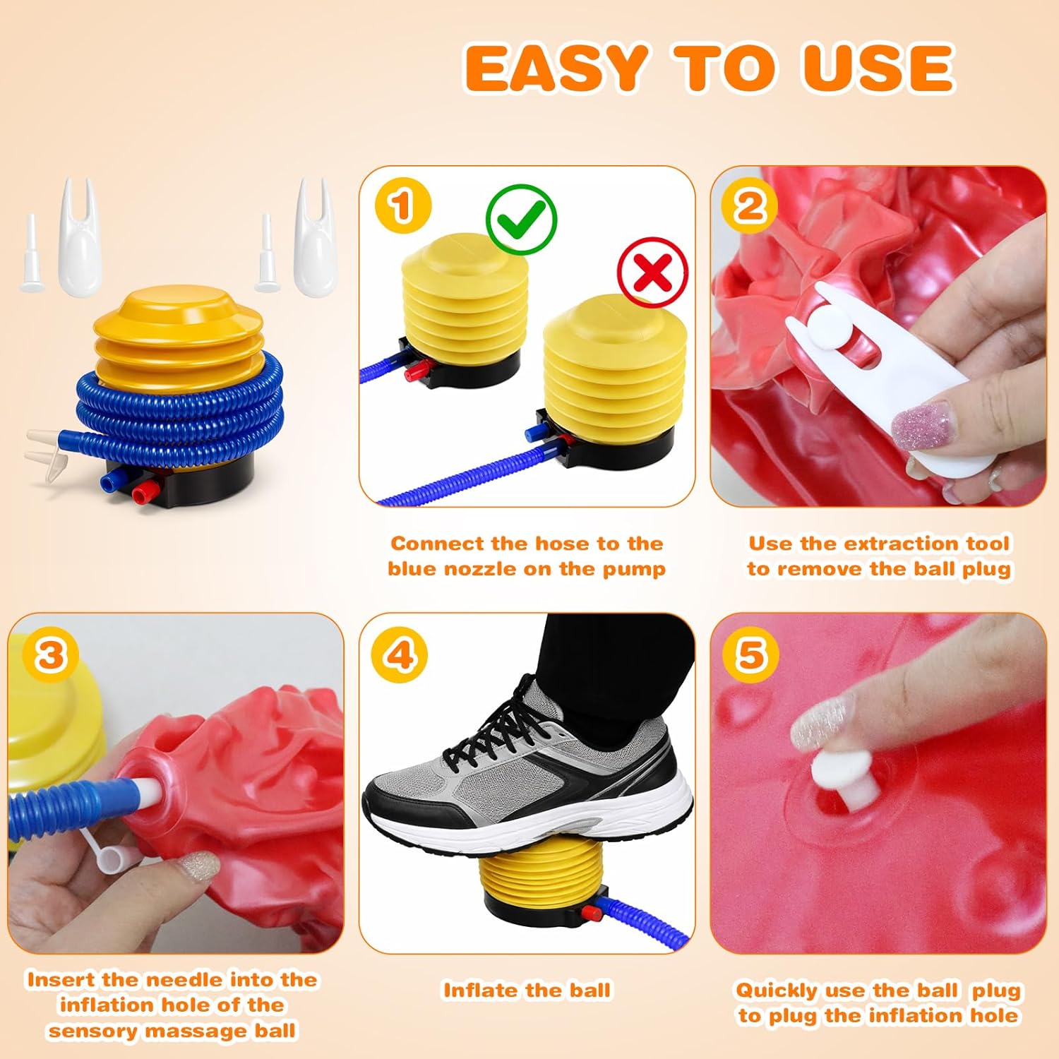 Premium Textured Sensory Balls for Active Play and Outdoor Fun! Bring vibrant energy and tactile excitement to playtime with our Jumbo Textured Sensory Balls! Designed specifically with kids and outdoor fun in mind, these large 33.5-inch (85 cm) balls feature a playful spiky texture that invites curiosity and active exploration. Made from durable, child-safe PVC material, they are perfect for bouncing, rolling, and endless outdoor games. Key Features: Child-Friendly Design: Soft yet sturdy spikes provide a safe tactile experience, encouraging sensory development and active movement. Perfect for Outdoor Play: Bright red and blue colors stand out in any setting, ideal for beach days, park adventures, or backyard fun. Promotes Active Play: Encourages running, bouncing, and cooperative games to support kids' motor skills and physical development. Easy to Inflate and Store: Includes a hand pump, an extraction tool and plugs for quick setup. Deflates easily for compact storage. Versatile Fun for All Ages: Great for playdates, family gatherings, school activities, or solo imaginative play. Ideal for: Outdoor play at the beach, park, or backyard Sensory play and motor skill development Group games and family activities School recess or playground fun Add excitement to playtime with these vibrant, textured balls—perfect for keeping kids active, engaged, and smiling all day long!