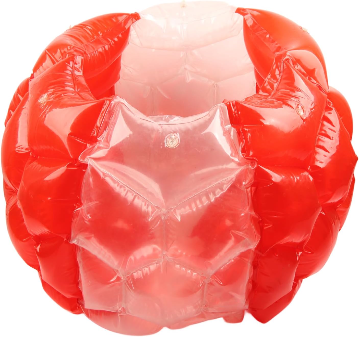 1. PVC MATERIAL: The inflatable bump ball is made of excellent PVC, with a streamlined design and no protrusions, making it safe and durable.2. INFLATABLE TYPE: The bump ball is inflatable design for convenient operation, easy to store and carry after deflating, can be easily placed in the suitcase.3. OUTDOOR TOY: This inflatable cushion ball is an interesting outdoor toy that can roll and bounce when worn, suitable for kids and adults to use.4. APPLICABLE SCENE: Perfect for family gathering, game, picnic, barbecue, birthday party, camping activities, beach, snow sport, or home entertainment.5. GOOD BUFFERING: This PVC inflatable balloon has good cushioning and will not harm the body during collisions, making it safe and harmless for kids.Specification:Item Type: Inflatable Bump BallInflatable Size: Approx. 90 x 80cm / 35.4 x 31.5in (not include gas)Material: PVCWeight: Approx. 1625-1681g / 57.3-59.3ozPackageList:1 x Inflatable Bump Ball1 x Repair Patches