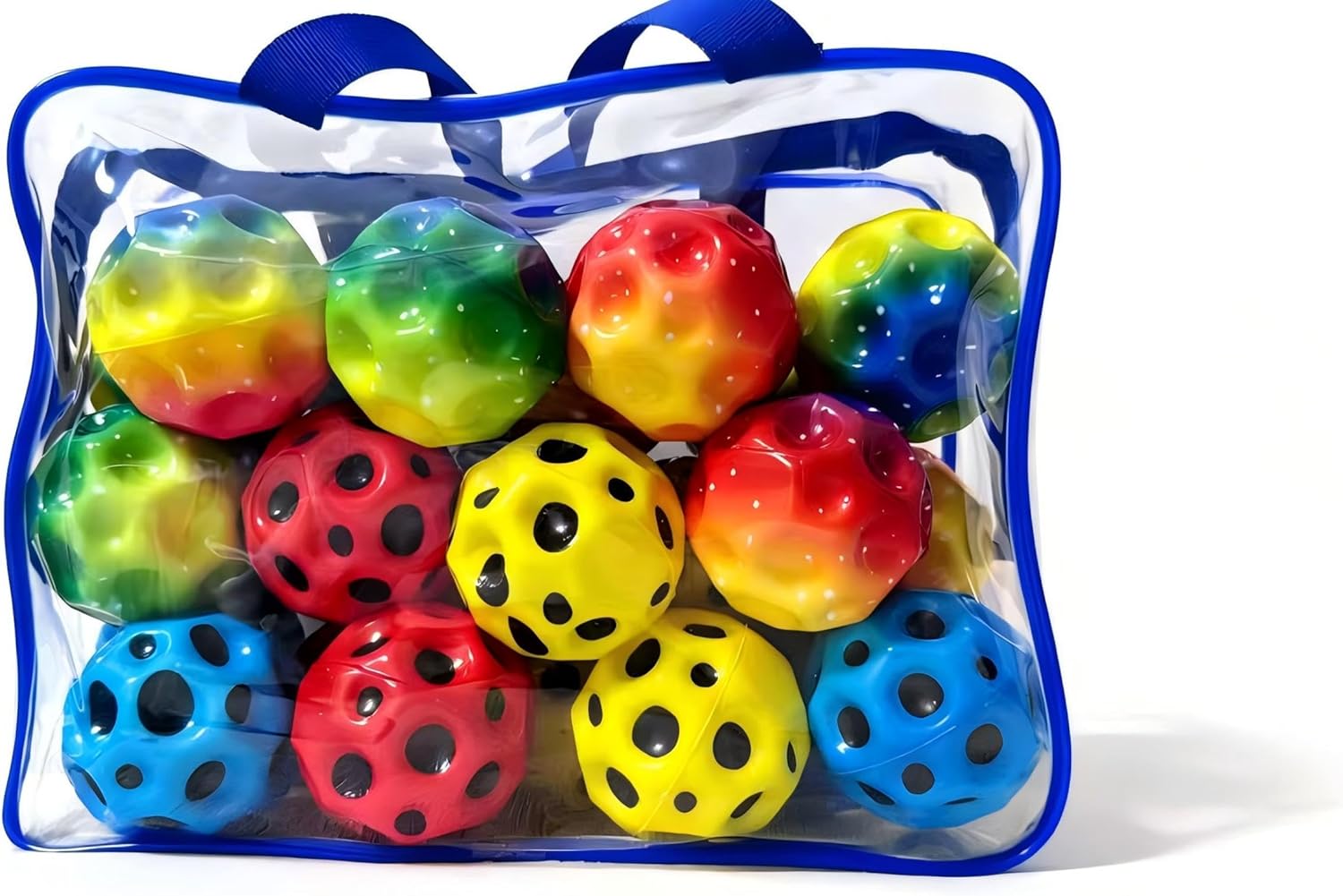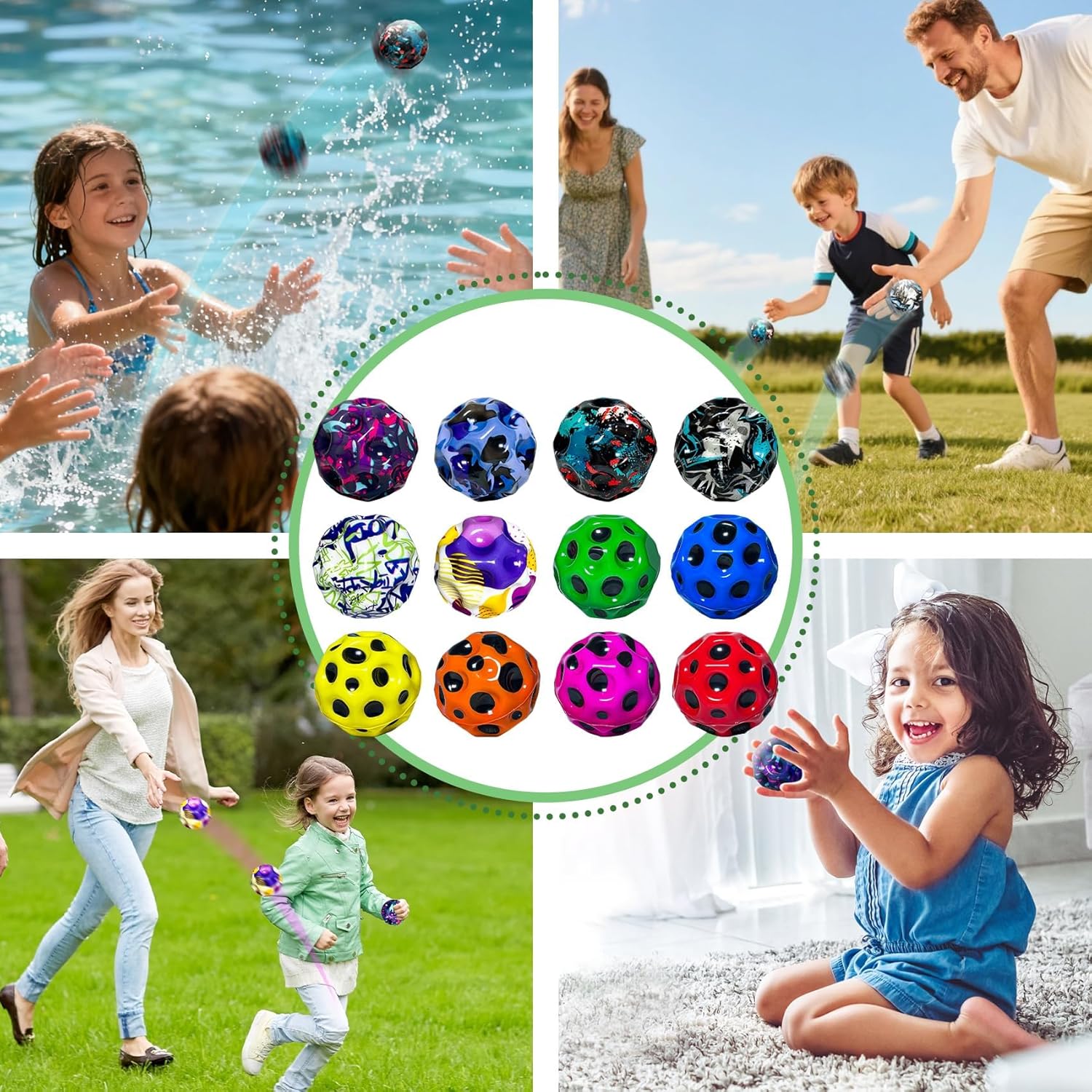 24 Pack High Bouncing Balls are made of premium soft PU foam, with excellent elasticity, durable construction and safe material for kids and adults. The 2.7-inch compact size is easy for small hands to hold, and the high-bounce performance keeps children active and entertained for hours.Planet-like surface texture ensures easy grip and helps improve hand-eye coordination and motor skills. Unique bouncing sound creates a fun playing atmosphere, while the soft material guarantees safe use indoors and outdoors without hurting walls, floors or people.This value 12-pack set is perfect for birthday parties, classroom rewards, carnival prizes, camping activities and family gatherings. Unpredictable bouncing direction and bright colors bring more surprise and fun to every play. It is an ideal gift choice for holidays, birthdays and any special occasions, suitable for toddlers, kids, teens and adults.