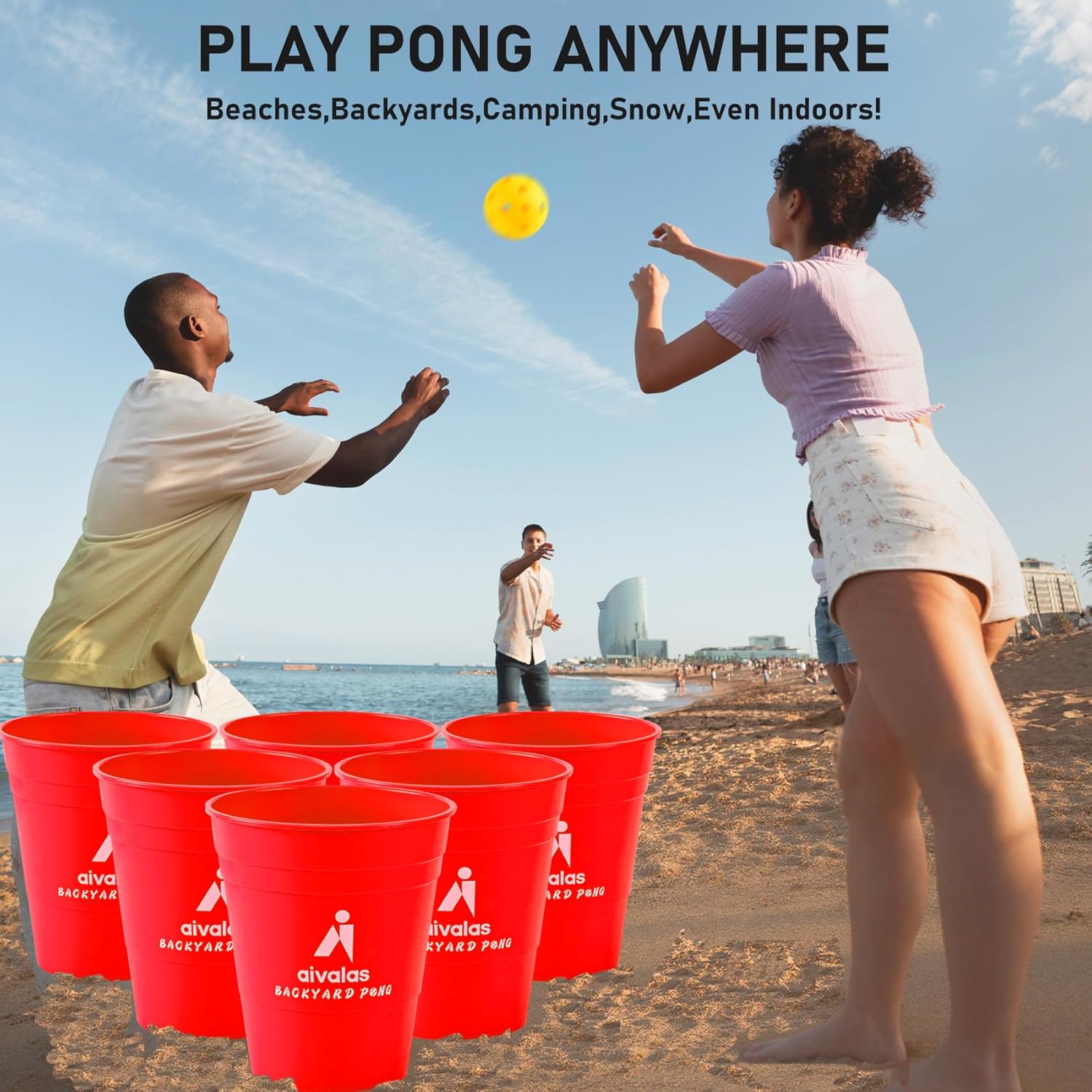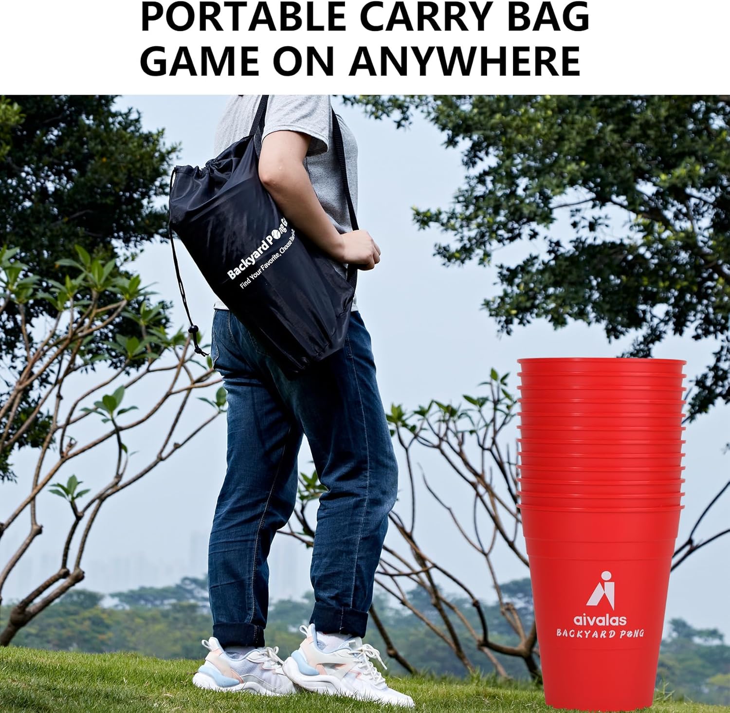 Aivalas Giant Yard Pong Outdoor Games Basketball Game with XL Size Buckets, Outdoor Yard Games for Lawn, Beach, Camping and Family Fun, Toss Throwing Games for Adults and Family