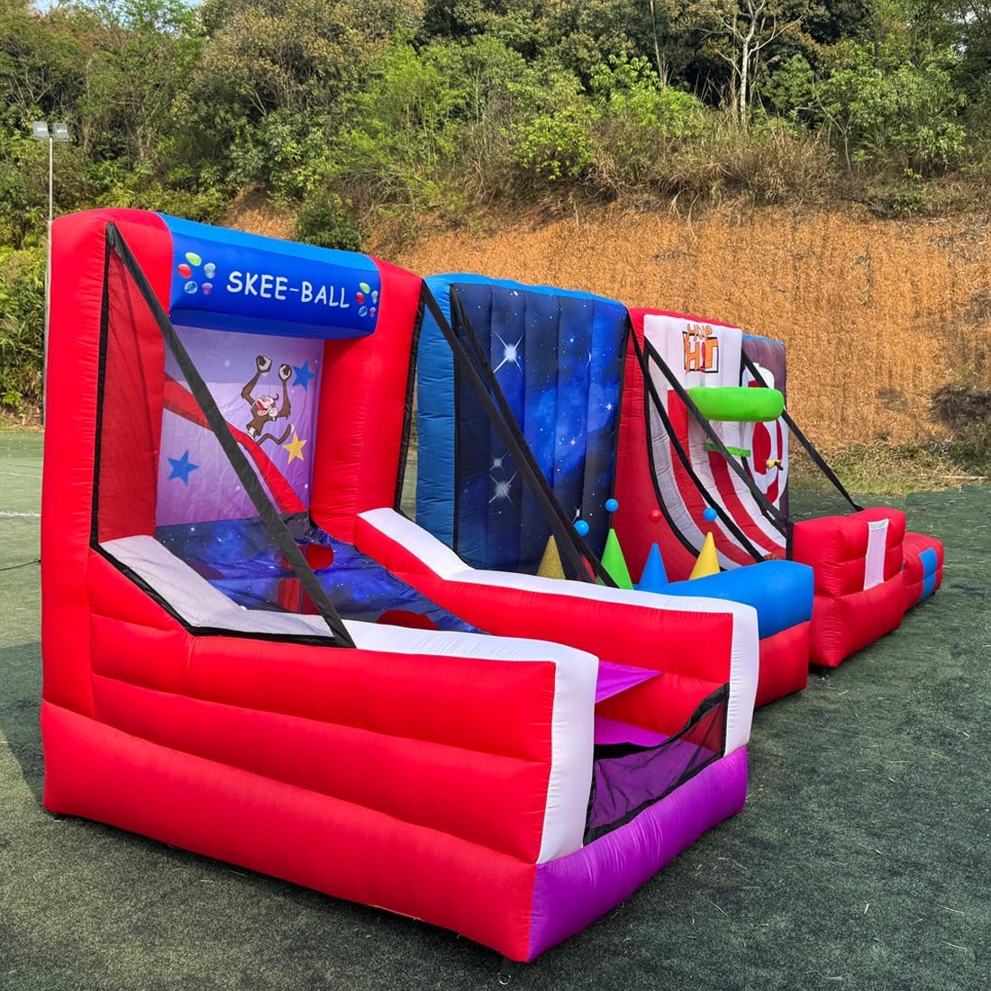 4 in 1 Inflatable Carnival Game Inflatable Sport Games Multi Sports Play, Galaxy Shootout, Basketball Hoop Shoot, Axe throw Dart for School Playground/Family/Team