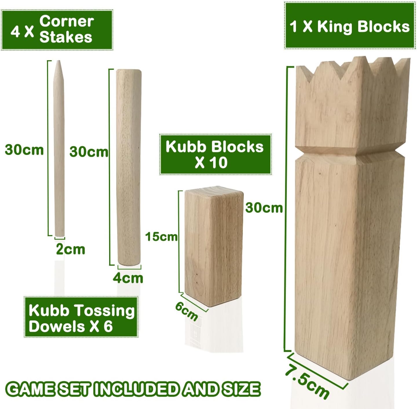 Premium quality rubber wooden kubb game set.