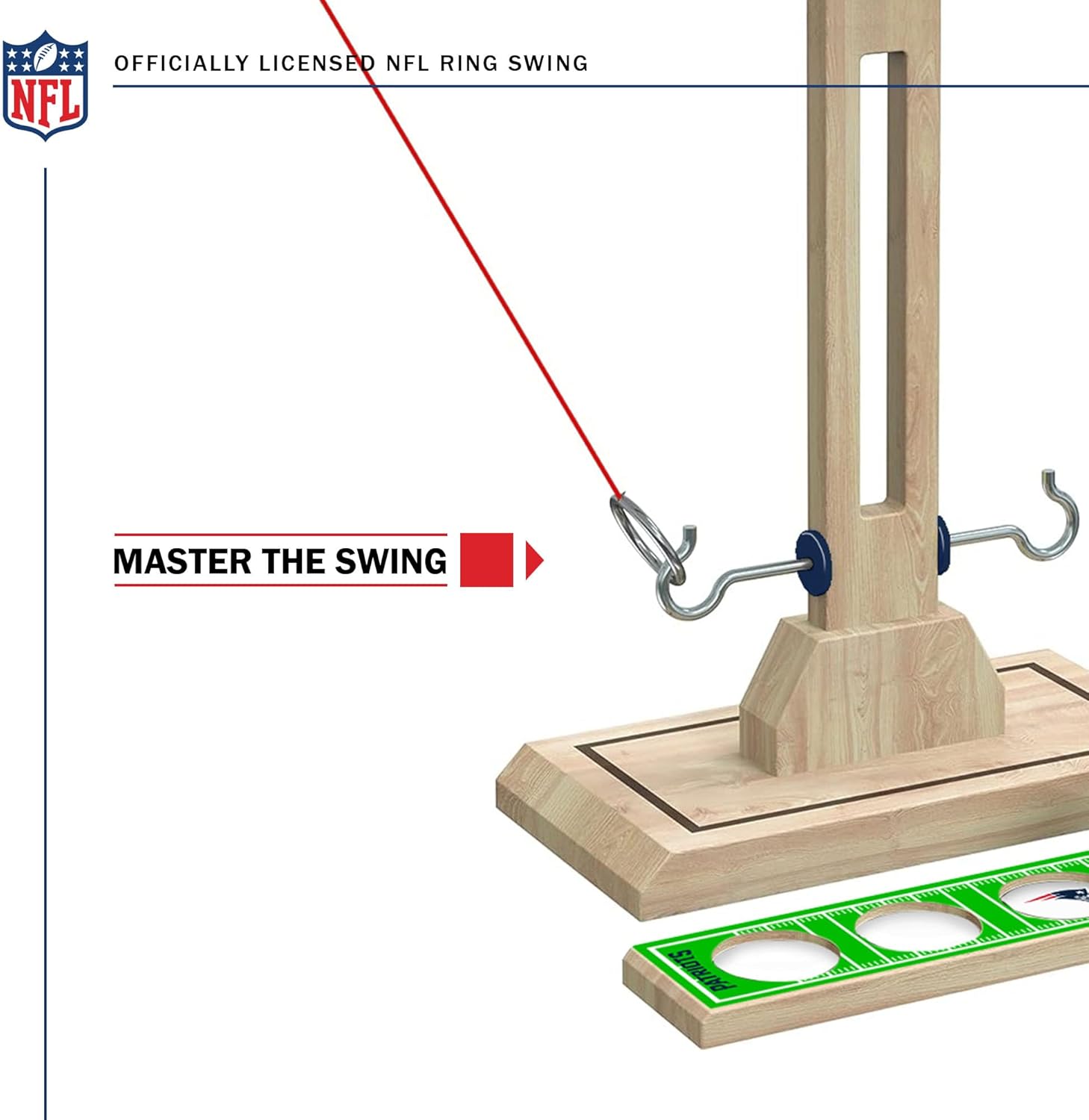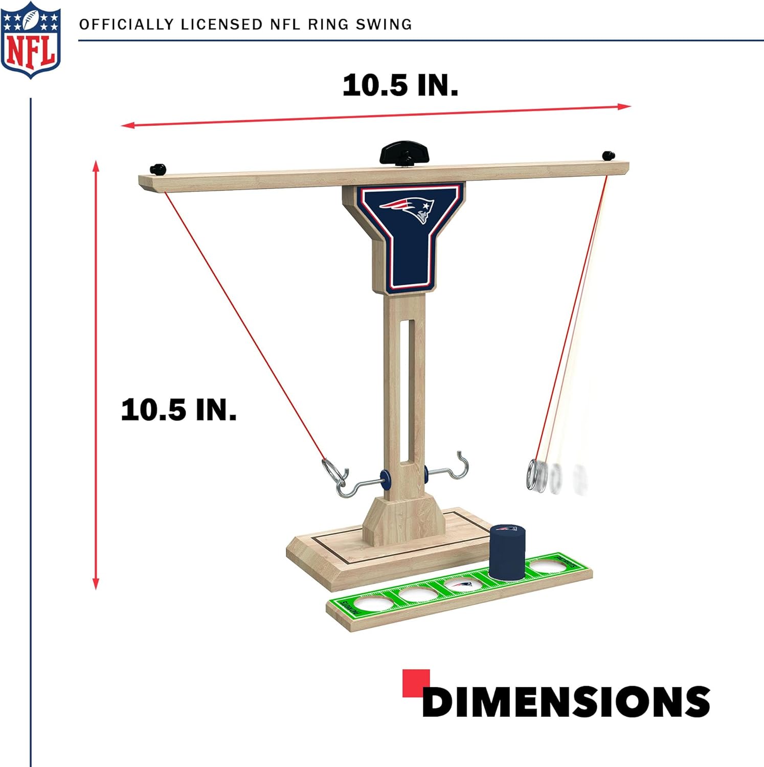Channel the spirit of your favorite NFL team and immerse yourself in electrifying head-to-head battles with our NFL Licensed Tabletop Ring Swing Battle Game. Compete fiercely to shift the line-of-scrimmage by deftly hooking your ring onto the tower before your opponent in a frenetic and fast-paced game of skill. With each successful hook, advance your peg closer to your opponent’s endzone, but hurry up because your opponent is working to move the peg towards yours! Crafted with premium wood materials, this ring toss game guarantees superior quality and durability, ensuring countless gaming sessions filled with excitement. Easy to play yet challenging to master, this game is the perfect addition to family gatherings, parties, and game nights alike. Measuring less than 20 inches, its portable design allows you to bring the exhilarating competition of ring swinging to any occasion, from lively parties to spirited tailgates and casual hangouts.