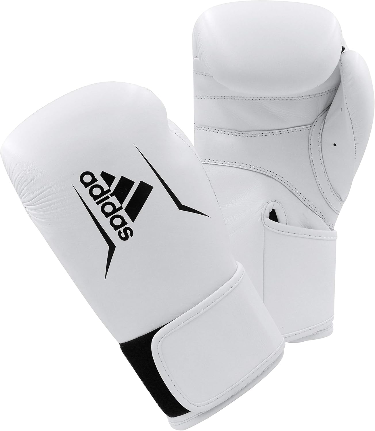 adidas Speed 175 Leather Training Gloves have been developed for the athlete who demands quality at an excellent price. Built for speed and fast combinations on the heavy bag, double end bag, punch mitts, Thai pads and more. The most unique thing about these training gloves is the adidas SDX foam padding that consists of one piece molded foam from the fingertips to the end of the wrist. The SDX padding provides superb comfort, ideal wrist support, excellent impact resistance and shock absorption. The gloves are made of high quality cowhide leather and have a striking adidas design. Full wraparound leather wrist strap with a Velcro closure assures extra comfort, secure closure and the perfect fit. Like with all boxing gloves, we suggest using a knuckle sleeve, quick hand wrap or a regular hand wraps to protect skin on your knuckles.