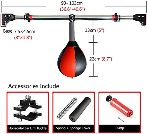Enhance your training routine with our premium Speed Bag and Training Pull-Up Bars set, designed for fitness enthusiasts looking to improve their skills and endurance. This versatile equipment features a high-quality PU Ball with a size of 22cm (8.7 inches) and is supported by a sturdy steel stand that adjusts from 93 to 103cm (36.6 to 40.6 inches). The Speed Bag is crafted with precision, featuring fine sewing and enhanced tensile strength for durability, ensuring it withstands intense workouts. Its flexible design allows you to develop endurance, speed, and accuracy, making it an essential addition to your boxing or fitness regimen. Whether you’re training at home, in the gym, or outdoors, its lightweight and portable setup means you can work out anywhere, anytime. This set comes complete with everything you need to get started: one Speed Bag, a training pull-up bar, a high elastic spring, and a pump. It's also a thoughtful gift idea for birthdays, holidays, or just because, appealing to anyone passionate about fitness. Please remember to avoid overinflating the Speed Bag and check all screws for tightness before each use to ensure safety. Gloves are not included, and you may notice a slight glue smell upon opening; simply ventilate the product for optimal use. Elevate your fitness journey with our Speed Bag set and unlock new levels of performance!