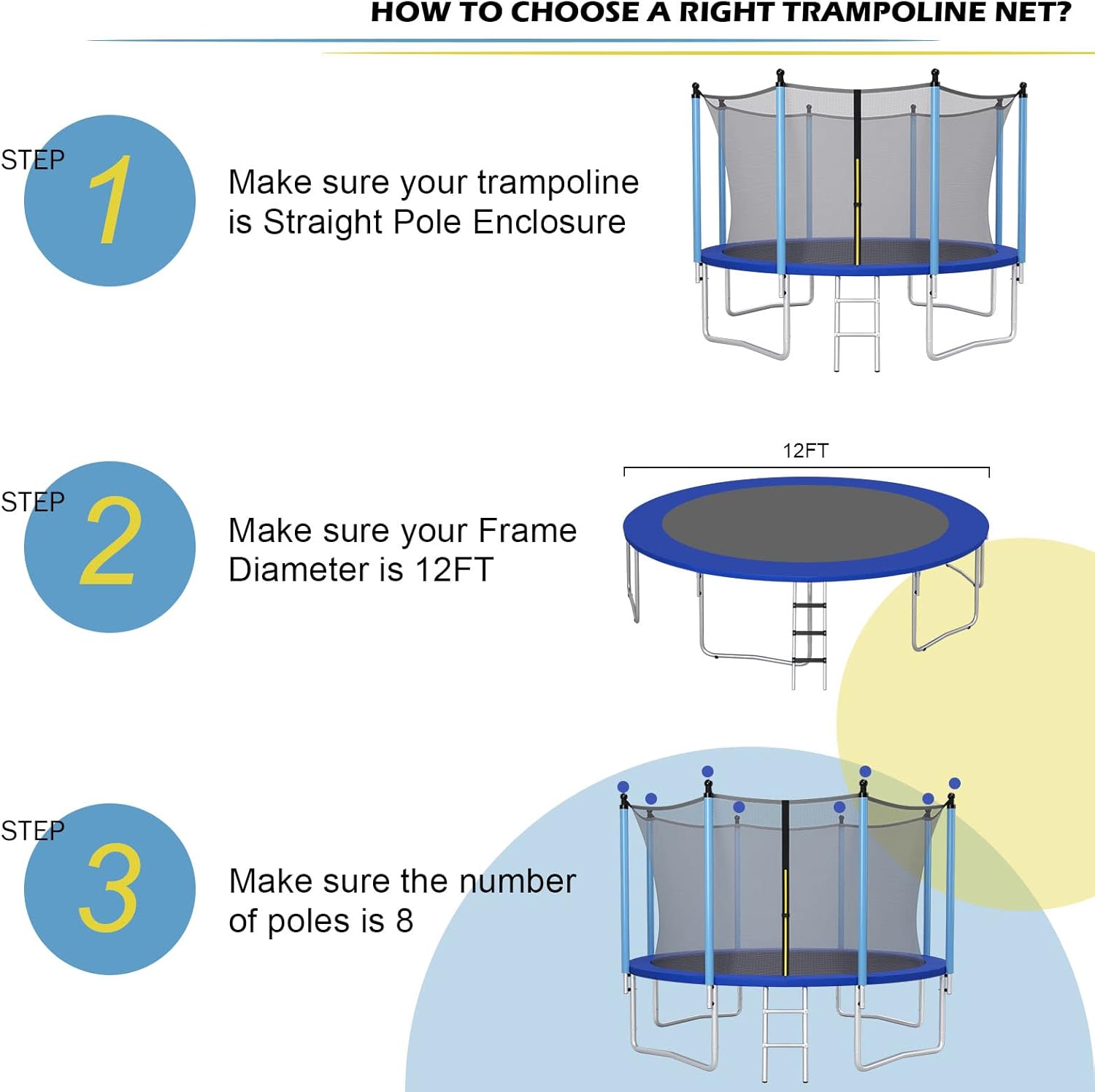 Description:Looking for a reliable and sturdy trampoline safety net? Look no further than our Goplus replacement trampoline net! Designed to provide the ultimate protection for your family, our safety trampoline net is constructed with high-quality materials that will keep your loved ones safe and secure while they have fun bouncing around. Made with heavy-duty polyethylene, this enclosure trampoline net is designed to withstand even the most vigorous jumping sessions. The material is sun-resistant, so it won't fade or deteriorate from exposure to the sun. With our replacement trampoline net, your family can enjoy hours of bouncing fun without having to worry about safety concerns. The net is designed to be a seamless part of your trampoline setup, providing peace of mind and confidence in your purchase.Features:Suitable for round trampolines of various sizesHigh quality PE material for lasting durability High safety net provides all-round protectionDouble-head zipper with buckles enhance using safety Breathable mesh ensures ventilated & breathabilityEasy set-up needs less time, energy & effort Provide high security while freely jumpingSpecification:Color: Black Materials: PENet Height: 74”/ 188cmZipper length: 48”/122cm Recommended Trampoline Size:8FT-6 Poles-6 Straps10FT-6 Poles-7 Straps12FT-8 Poles-8 Straps14FT-8 Poles-9 Straps15FT-6 Poles-10 Straps15FT-10 Poles-10 Straps16FT-6 Poles-11 Straps16FT-12 Poles-11 StrapsPackage Include: (Net Only)1x Trampoline Safety Net with Straps