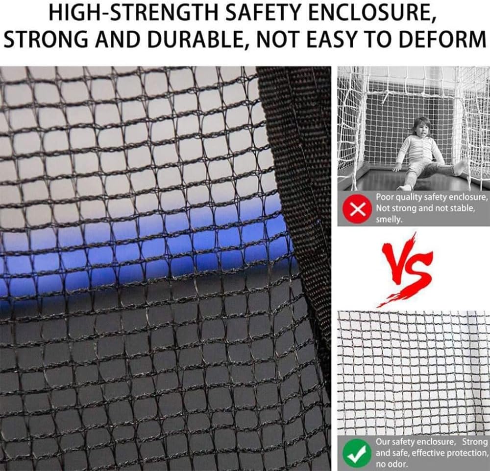 Trampoline Safety Net, 6ft 8ft 10ft 12ft 13ft 14ft 16ft Trampoline Replacement Safety Enclosure Net, Weather Resistant Trampoline Net, Children's Round Frame Trampoline Net, Net OnlyBefore purchasing, please check the outside diameter and number of poles of the trampoline stand.THE DIMENSIONS ARE AS FOLLOWS:6FT/6 Poles(Diameter 1.83m, Height 1.63M)8FT-6 poles(Diameter 2.44m, Height 1.83M)10FT/6 poles(Diameter 3.06m, height 1.83M)10FT/8 poles(Diameter 3.06m, height 1.83M)12FT/6 poles(Diameter 3.66m, Height 1.83M)12FT/8 poles(Diameter 3.66m, height 1.83M)13FT/8 poles(Diameter 3.96m, height 1.83M)14FT/8 poles(Diameter 4.27m, height 1.83M)16FT/12 poles(Diameter 4.88m, height 1.83M)Wish you a happy life!Finally, thank you for coming.ank you for coming.