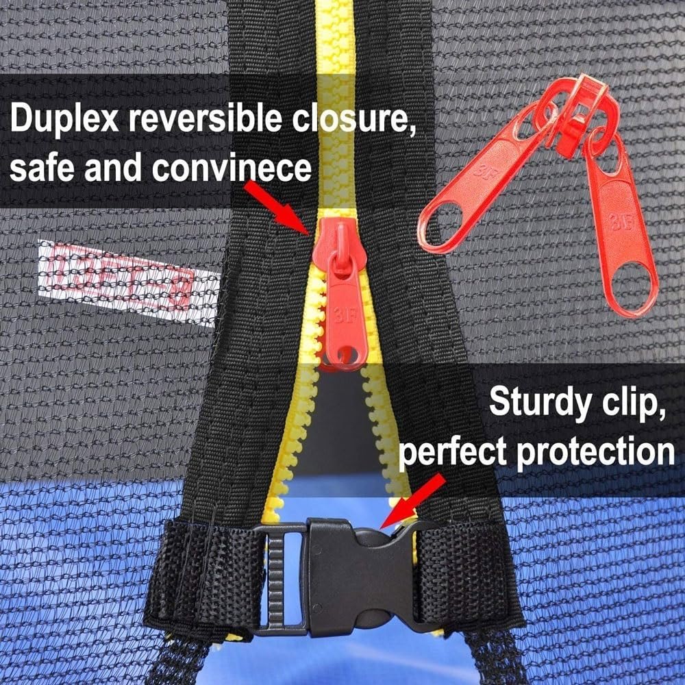 Trampoline Net, Trampoline Enclosure for 6ft 8ft 10ft 12ft 13ft 14ft 16ft Round Trampoline with Double-Headed Zippers & Buckles, Weather-Resistant Sun-Protective Trampoline Replacement NetBefore purchasing, please check the outside diameter and number of poles of the trampoline stand.THE DIMENSIONS ARE AS FOLLOWS:6FT/6 Poles(Diameter 1.83m, Height 1.63M)8FT-6 poles(Diameter 2.44m, Height 1.83M)10FT/6 poles(Diameter 3.06m, height 1.83M)10FT/8 poles(Diameter 3.06m, height 1.83M)12FT/6 poles(Diameter 3.66m, Height 1.83M)12FT/8 poles(Diameter 3.66m, height 1.83M)13FT/8 poles(Diameter 3.96m, height 1.83M)14FT/8 poles(Diameter 4.27m, height 1.83M)16FT/12 poles(Diameter 4.88m, height 1.83M)6/8/10/12/13/14/16 FT all-round enclosure net offers reliable protection for your little form all aspects. Transparent net enables you to keep an eye on your kids and at the meanwhile, frees your hands.【Buying Guide】How to choose the right net for your trampoline: step 1, make sure the trampoline has straight poles around; step 2, measure the external trampoline diameter across the center; step 3, count the number of poles.Wish you a happy life!Finally, thank you for coming.ank you for coming.