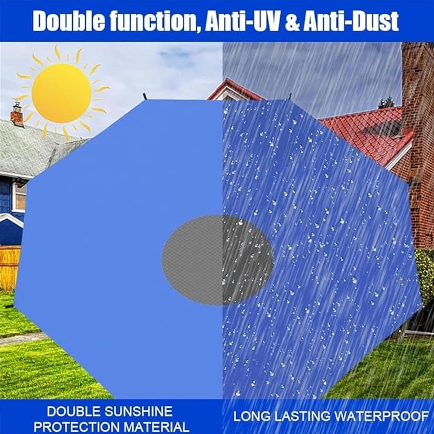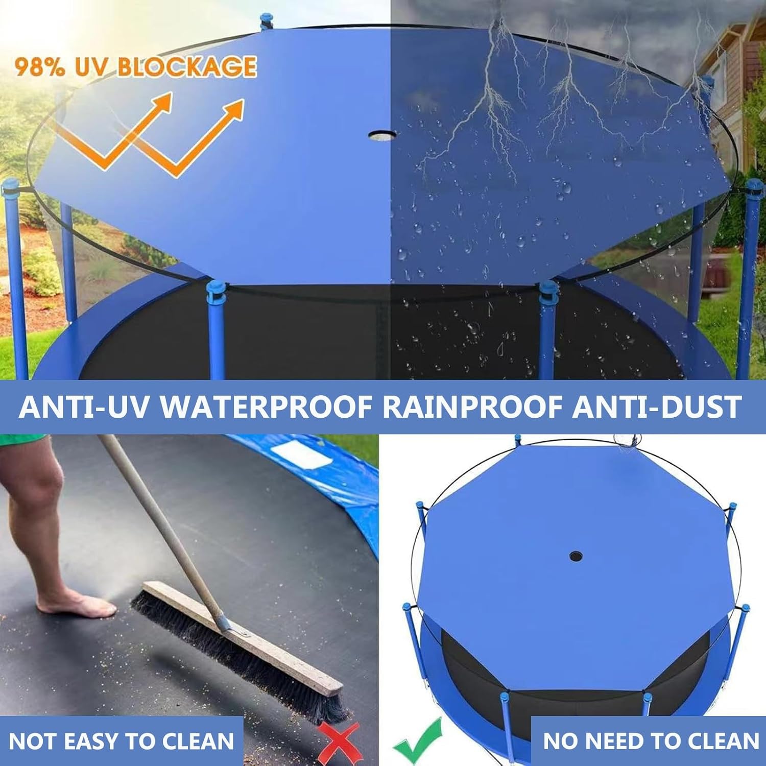 Shield your recreational trampoline from seasonal wear-and-tear with our shade cover. Keeps your trampoline clean, dry, and leaves. Enjoy uninterrupted bouncy funProduct Description:Material: Oxford clothSize: 6ft/8ft/10ft/12ft/14ft/16ft6/8/FT is suitable for 6/8FT trampoline with 6 poles10/2/14FT is suitable for 10/12/14FT trampoline with 8 poles16FT is suitable for 16ft trampoline with 12 polesPackage includes: 1 x trampoline shade coverPlease note:1. Net Only, Poles Not Included, and Trampoline.2. Due to manual measurement, please allow 1-3cm measurement deviation.
