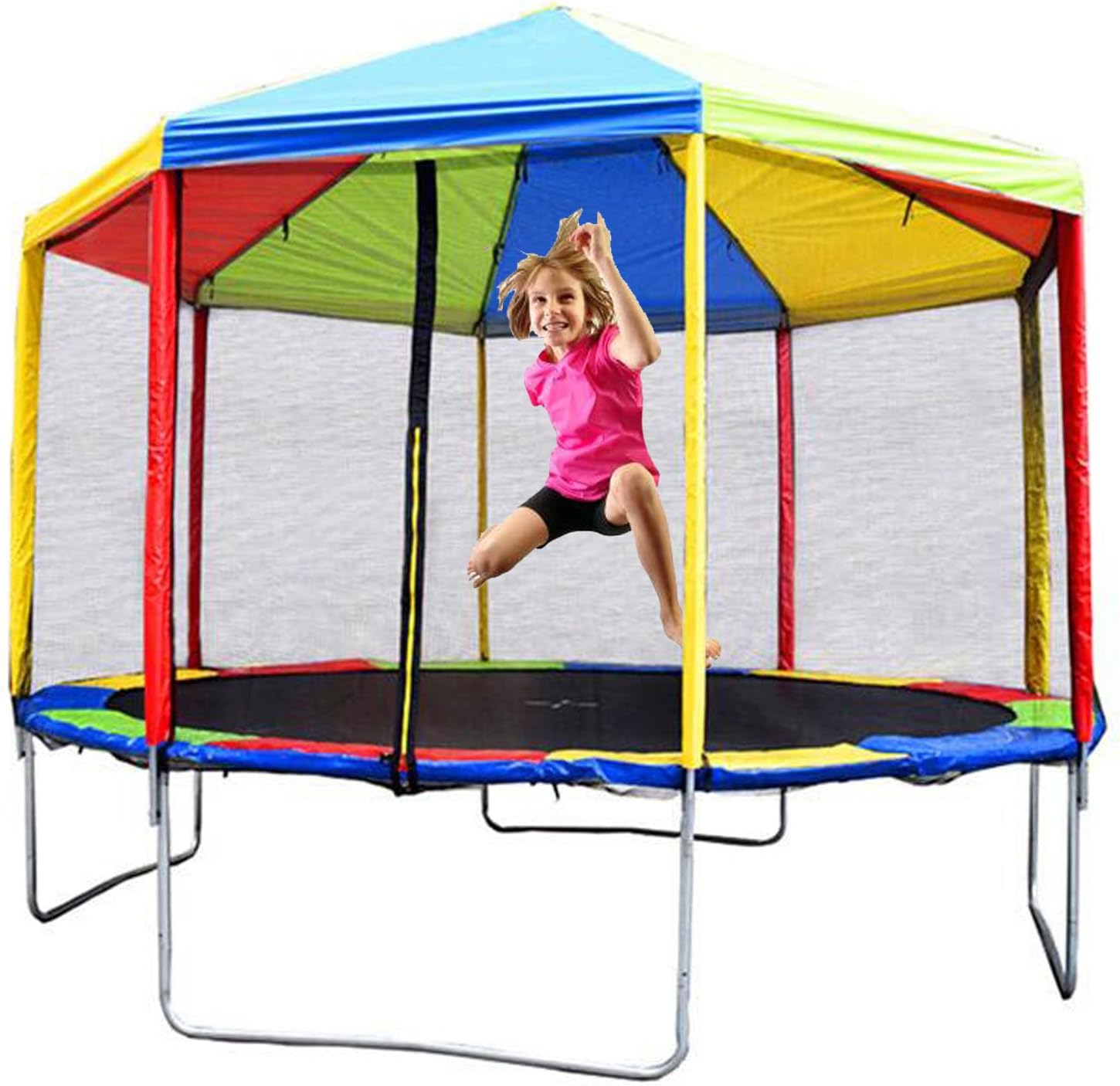 ✔Feature:Rainproof, dustproof, sun protection, anti- corrosion, Let your children play happily in a cool environment!Bright and eye- catching colors, stimulate children' s interest in sports, their physical fitness, and increase their physical health while being happy, keeping your trampoline surface more fresh.✔Kind tips:Please you choose size according to your trampoline size.This is trampoline canopy only, does not include its frame or the whole trampoline.✔Specification:Material: PVCColour: multicolorSize (approx.):6FT, diameter 1.83m, 6 Post tie rope8FT, diameter 2.44m, 6 Post tie rope10FT, diameter 3.05m, 8 Post tie rope12FT, diameter 3.66m, 8 Post tie rope13FT, diameter 3.96m, 8 Post tie rope14FT, diameter 4.27m, 8 Post tie rope15FT, diameter 4.57m, 12 Post tie rope16FT, diameter 4.88m, 12 Post tie rope✔Package include:1* Trampoline Canopy (Without framework)✔Notice:1. Due to different monitors, please allow a little color difference. Please refer to the actual product.2. Please allow a slight error of 1-3 cm due to manual measurement.