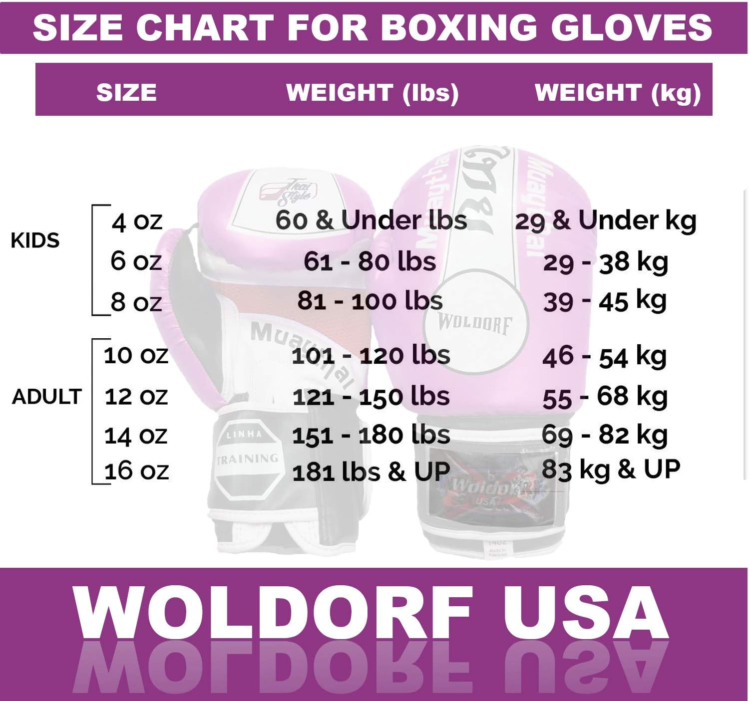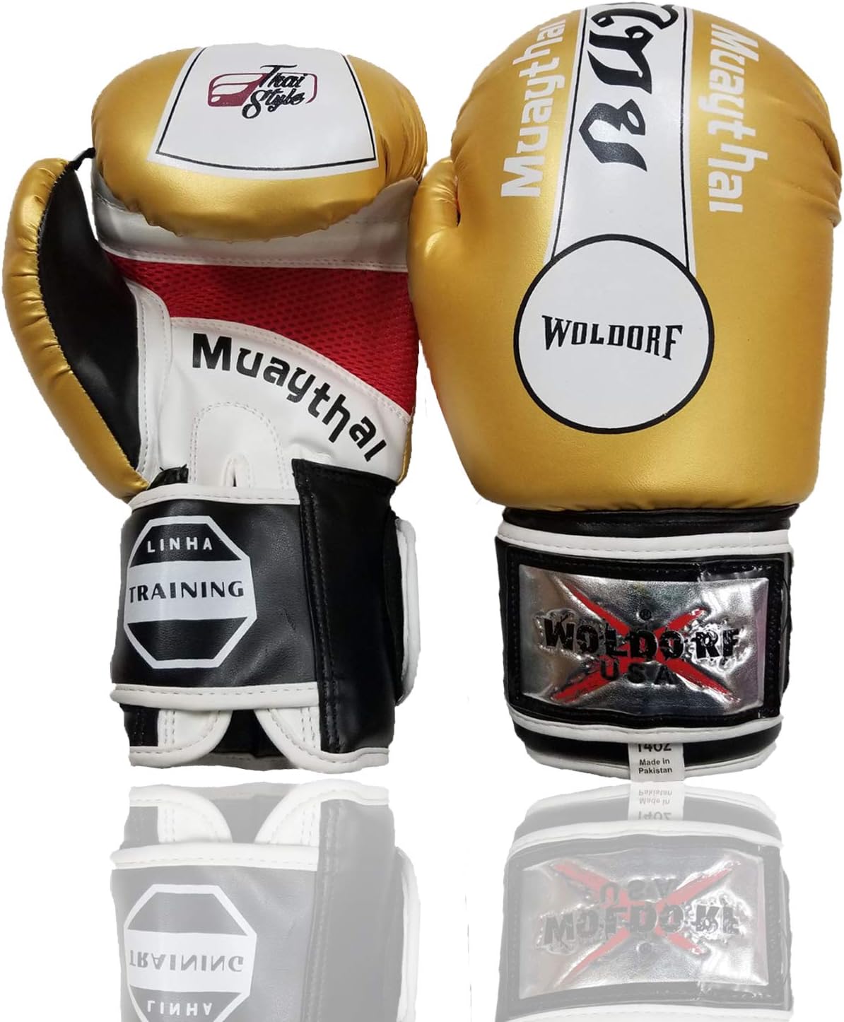 Welcome to WOLDORF USA Boxing GlovesWoldorf USA Professional Boxing Gloves Muay Thai MMA Training Leather Mitts for Heavy Fighting Sparring Ego Gloves for Punching Bag Thai Pad Focus Pads Double End Ball Punching and Grappling DummyHigh-Rated Quality Features✔Injected-Molded Foam (IMF) Tech technology for hand and fist padding protection.✔Hook and loop wrap around closure for hand and wrist safety.✔Bottom vinyl overlay webbing reinforces glove during impact.✔Mesh for moisture absorption and control during training Includes attached thumb.✔Complete with a moisture-wicking inner hand liner to effectively reduce perspiration and help provide a cool workout.If you are trying to complete your aims. This product will help you a lot and also helps to reduce your expenses as well as reduce time because easy to clean and maintain.This product is adjustable in your hands because of adjustable straps, believe us during work-out this will not lose fitness in your hands.Multi-layer gel technology, airflow functions reduces injuries and other kind of bone inflammation. Thus, this product gives you a boast to fulfill your goal and enhance your motivation level and helps to achieve whatever you want.We use latest technology and modern method to make this product like 20 plus process, because we do not compromise on health and goals. This attitude makes professional quality and expensive brand with beautiful design.We guarantee this would be best quality boxing gloves.LOVE FIGHT!!!BUY IT...