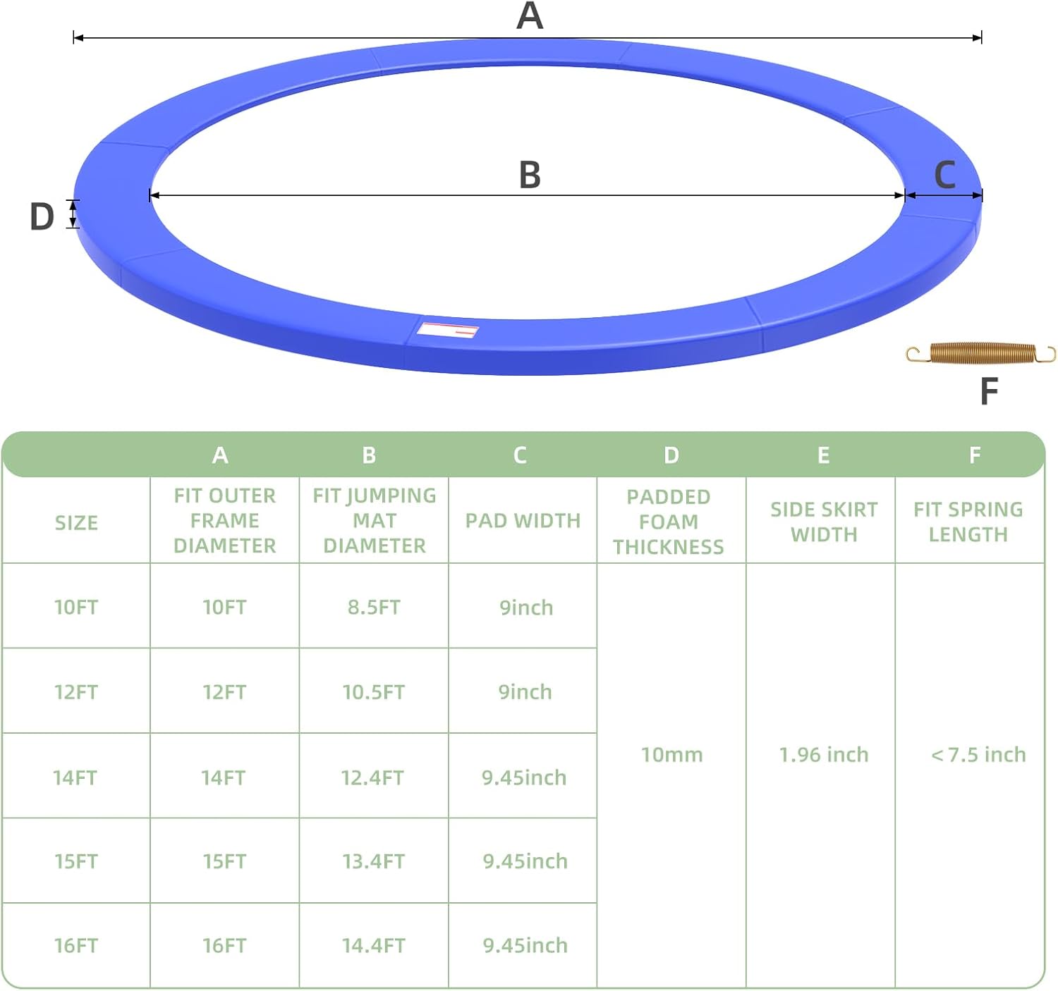 | Included Components | Trampoline Springs Cover |