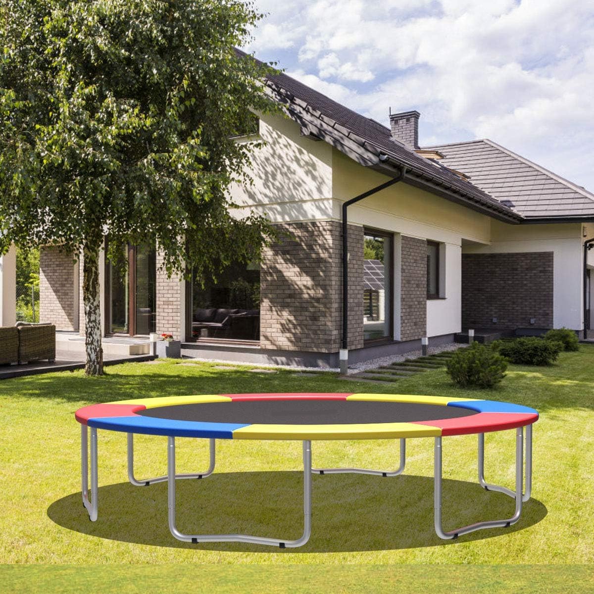 KOTEK Trampoline Pad - the ultimate safety accessory for your trampoline. Available in various sizes from 8FT to 16FT, this spring cover is a must-have accessory for trampoline safety. Designed without any holes for poles, it ensures a seamless and secure fit on your trampoline. Crafted from tear-resistant and waterproof material, this pad provides durable protection against wear and tear, extending the lifespan of your trampoline.Upgrade your trampoline with this replacement padding to enhance safety during every jump and flip!Features:6 sizes and 2 colors available, there's always one to satisfy your needsTightly stitched joints to effectively prevent tearing and leakage24pcs elastic straps simplify installation and ensures stability15mm-thick safety pad absorbs accidental bouncing and prevents injuriesEnsure springs are fully covered to provide edge protectionWaterproof PVC and PE fabrics for easy cleaning and maintenanceFoldable design for space-saving storage and easy mobilitySpecifications:Color: Navy/ColorfulMaterial: PVC, PE, EPE FoamSize(Outer Circumference): 8/10/12/14/15/16 FTPadded Foam Thickness: 15mm/0.6"Fit Spring Length: 5.5"/7"Pad Width: 12"Package Includes:1 x Trampoline Pad