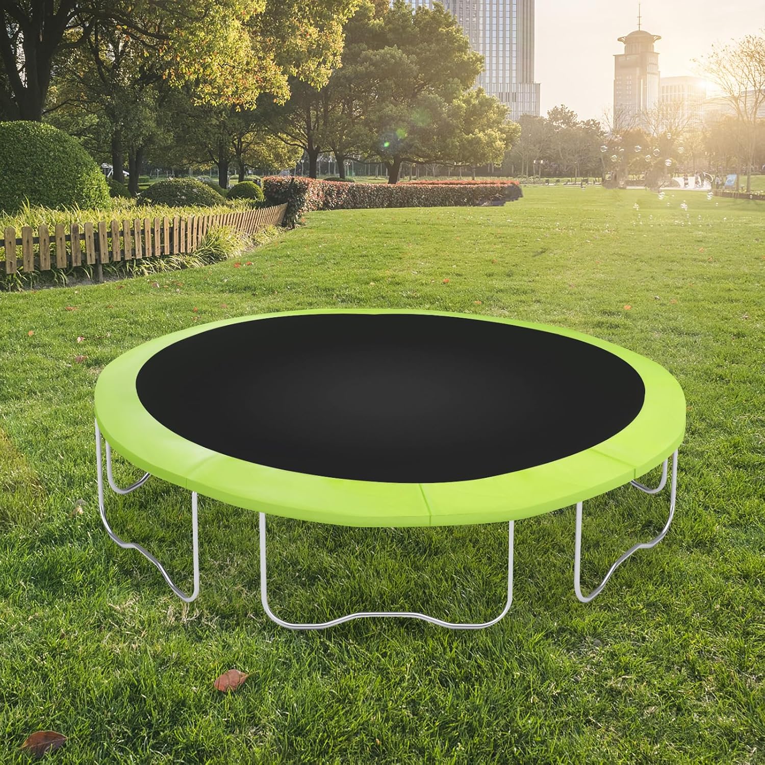 ApplicationIt is suitable for trampoline facilities in family courtyards, indoor play areas, parks, outdoor amusement parks, kindergartens, etc. It is compatible with most standard trampolines.SpecificationMaterial: PVC, Pearl Cotton(Thickness: 10mm/0.39 in), PE Color: GreenShape: RoundStyle: ModernInstallation Required: YesOuter Ring Diameter: 4.8m/16 ftInner Ring Diameter: 4.3m/14.3 ftPad Width: 30cm/12 inPackage Size: 66*36*26 cm/25.98*14.17*10.24 inGross Weight: 2.5 kg/5.51 lbsNet Weight: 2.38 kg/5.25 lbsPackage Included1* Trampoline Protection PadNotes1. Before purchase, please measure your trampoline outer frame diameter, spring length, and jumping mat diameter, and confirm that the selected pad can fit your trampoline.2. It is recommended to change the pad regularly for better performance.3. Please allow the slight color difference caused by the shooting light and 1-3 cm error due to manual measurement, and make sure you do not mind before ordering.