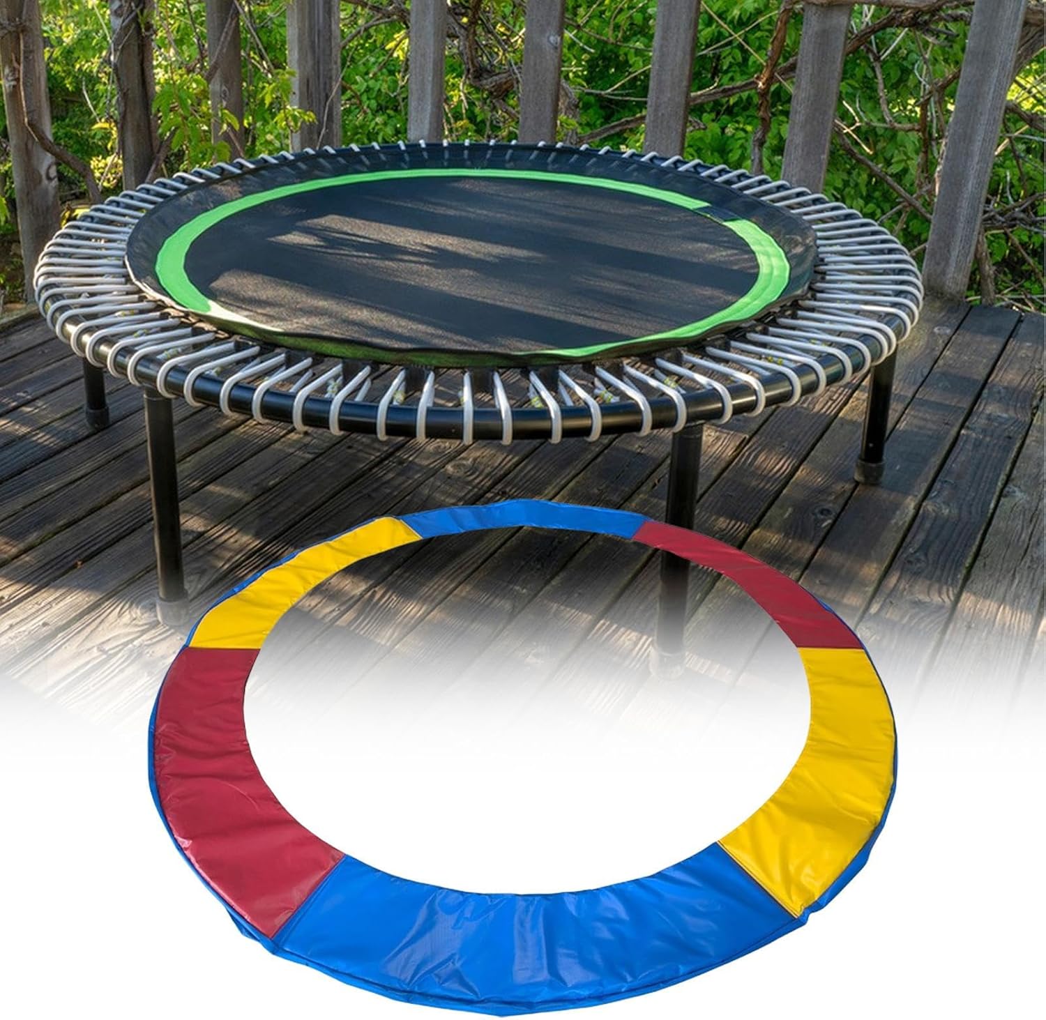 Secure your trampoline with a high-performance spring cover that provides good protection. Equipped with a waterproof and dust-proof pad, it guards against weather damage, prolonging the lifespan of your equipment Specification: Name: Trampoline Spring Cover Color: Color Material: PVC+PE+Cotton 6ft : Outer Diameterabout 1.83m/6 feet, Inner Diameterabout 1.33m/4.36 feet 8ft : Outer Diameterabout 2.44m/8.01 feet, Inner Diameter about 1.94m/6.36 feet 10 feet : outer diameter about 3.06m/10.04 feet, inner diameter about 2.54m/8.33 feet width: about 25cm/9.84 inches cotton thickness: about 0.6cm/0.24 inchesPacking List: Trampoline Spring Cover *1Note: Due to the difference in light and screen settings, the color of the item may vary slightly from the picture.Due to the different manual measurement, please allow 1-2cm size difference.