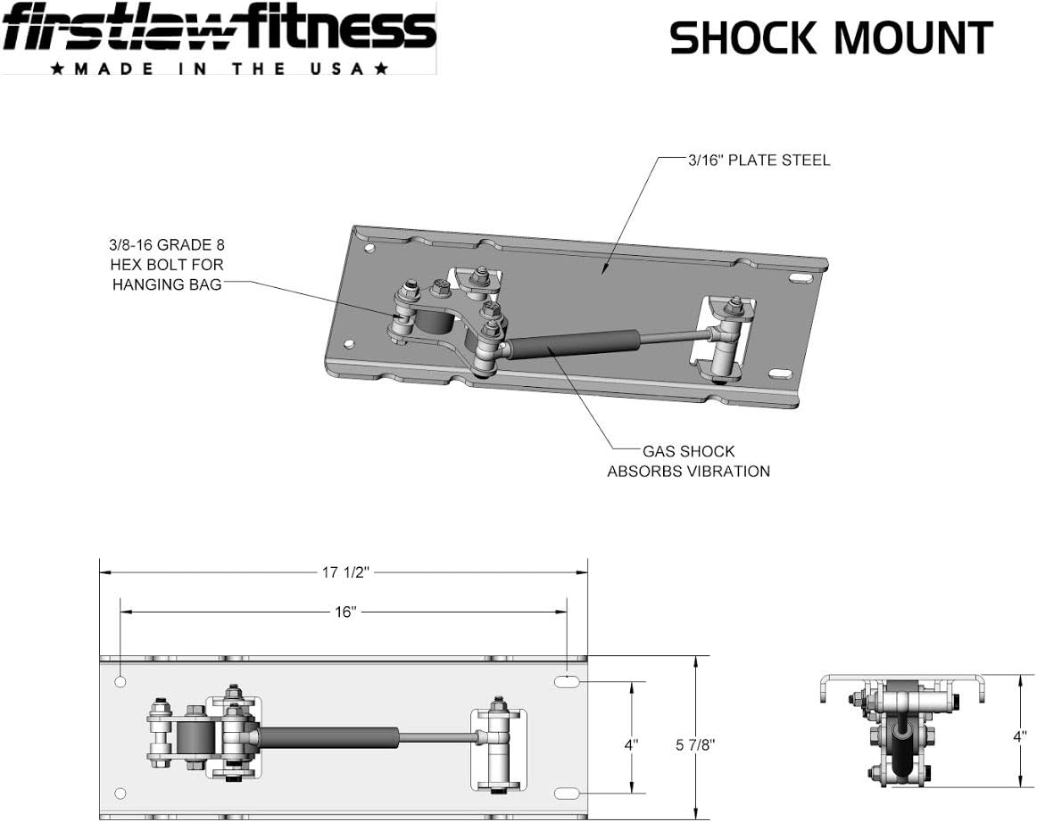 The Firstlaw Fitness Shock Mount Heavy Punching Bag Hanger is another great way to hang your heavy punching bag. The Shock Mount uses gas shock technology to greatly reduce the noise and vibration created when training. Be sure to use the drop down box and select the weight of your heavy bag. Every Shock Mount uses the same chassis. The only difference is the force of the gas shock. Your Shock Mount will perform best if the correct bag weight is selected. The Shock Mount with 24" Extensions is designed to attach to open floor joists on 12" and 24" (center to center). It can also be mounted through drywall. For 16" joist spacing please see the standard Shock Mount. Firstlaw Fitness created and manufactures 4 different styles of heavy bag mounts that are designed to attach to wooden floor joist. The Wood Beam Mount (provides no vibration absorption) - The Joist Mount (provides good vibration absorption) - The Shock Mount (provides very good vibration absorption) - The Spider Mount (provides the best vibration absorption you can buy). Please contact us if you have questions which mounting system is the right one for your application.