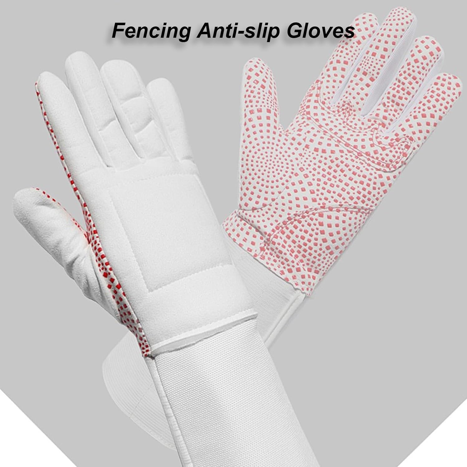 Product Features:- Fully dot-coated anti-slip palm- Anti-slip and wear-resistant material extends lifespan- Thickened design maintains overall breathability and comfort- Soft and breathable knitted material conforms to the arm for flexible movement- Adhesive design allows for adjustable tightness, enhancing protection and athletic performanceSpecifications:Material: Microfiber + CanvasSizes: XS, S, M, L, XLDominant Hand: Right-handedSuitable Weapons: Foil, Epee, and other sabresPurpose: Daily trainingSet Includes:1 * Right-hand fencing glove