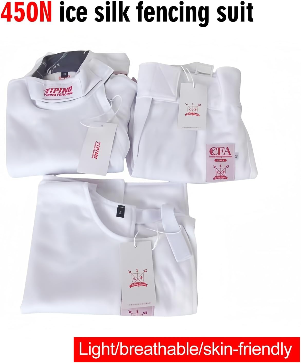 ------------Welcome to my store!------------This 450N left-handed fencing three-piece suit (including jacket, pants and vest) combines safety, comfort and performance, making it an ideal choice for daily training and competition.Made of breathable ice silk fabric, it can quickly absorb moisture to keep you dry and comfortable during high-intensity training, and the lightweight design ensures freedom of movement. Its high-impact protection design can withstand 450N of impact, providing reliable protection against knife strikes, and reinforced stitching in high-movement areas such as shoulders and knees for durability.Whether you are honing your skills in practice or competing at a professional level, this versatile suit can balance protection rigor and breathable comfort. It is a must-have for fencers who pursue functionality and quality.It is recommended to wash by hand. If you need to machine wash, you can put on the net cover to avoid damaging the clothes.Product name: 3-piece fencing suitSuitable for the crowd: children/adultsSpecifications: Top + Pants + VestSize: 36#-60#Puncture resistance strength: 450N suitable for competitionsSuitable sword types: foil/epee/saber