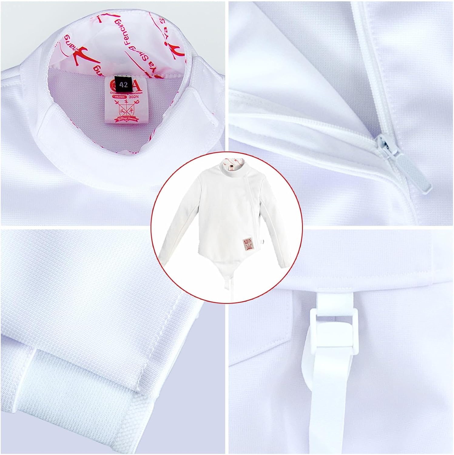 HXYHydrypd fencing suit gives you perfect protection for fencingFeaturesThe metal zipper is strong and durable and not easy to damagePaste Design, free adjustment of the neckline, ensure better wearing feelingThe cuffs are tightened to prevent falling off, effectively improving the convenience of fencingSmooth threading, delicate sewing, elegant and simple workmanshipProduct name: fencing jacketProduct size: 32-60Puncture resistance: 450NApplicable sword type: foil/epee/sabreApplicable people: children/adultsPackage includes: fencing jacket x1