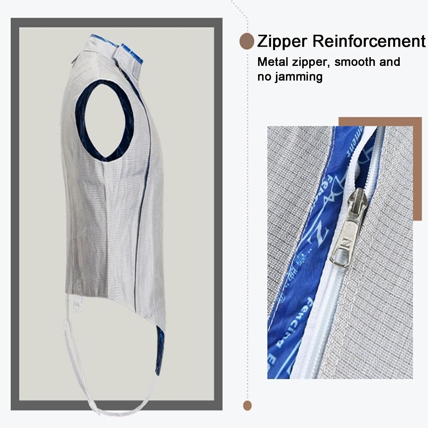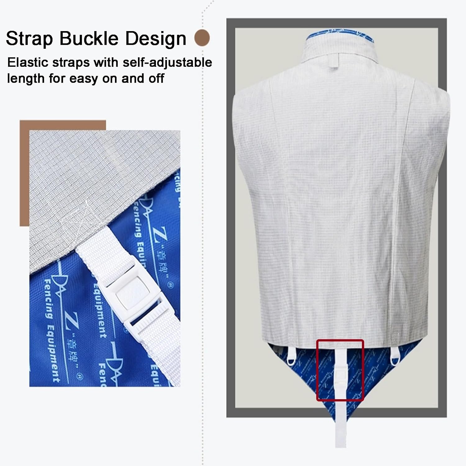 This fencing metal jacket, it uses a unique copper wire material, provides excellent durability and protection, can effectively resist impact. Its combination of durability, protection and comfort makes it an indispensable part of your fencing equipmentProduct name: Fencing JacketsMaterial: Copper wireProduct size: 28, 30, 32, 34, 36, 38, 40, 42, 44, 46, 48, 50, 52, 54, 56, 58, 60chest circumference: 28-53 inSuitable height: 47-75 inApplicable sword types: FoilApplicable hand: right handApplicable scenarios: daily trainingYou will get:1 x fencing Jackets