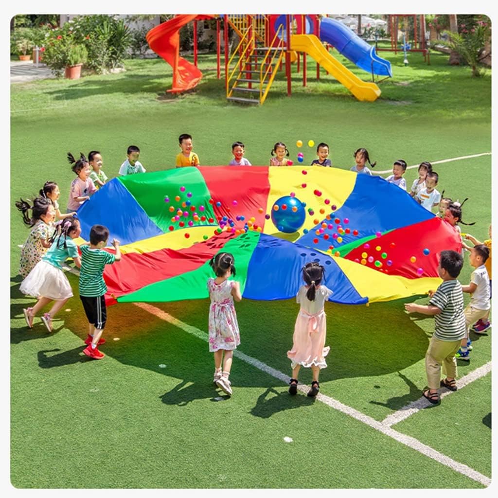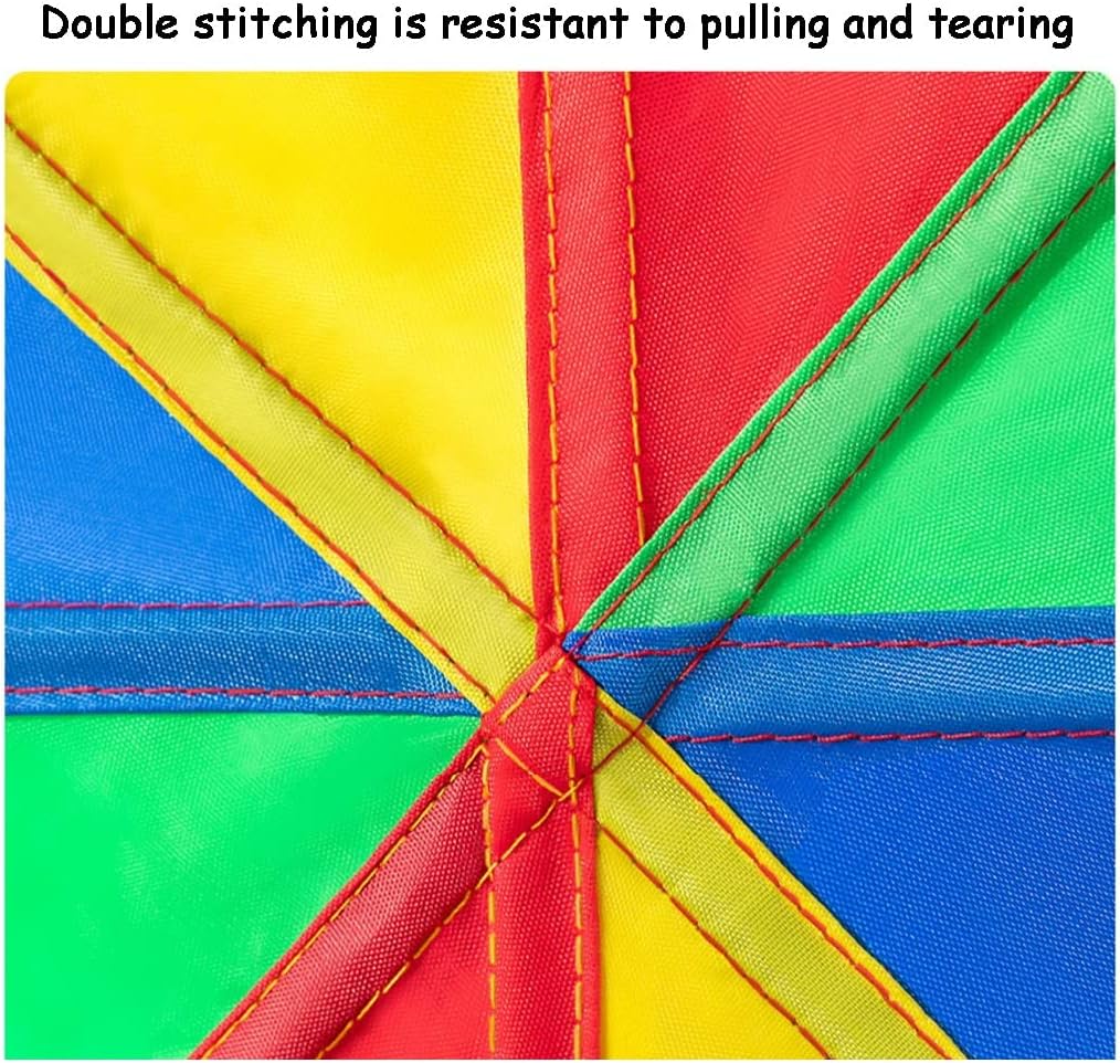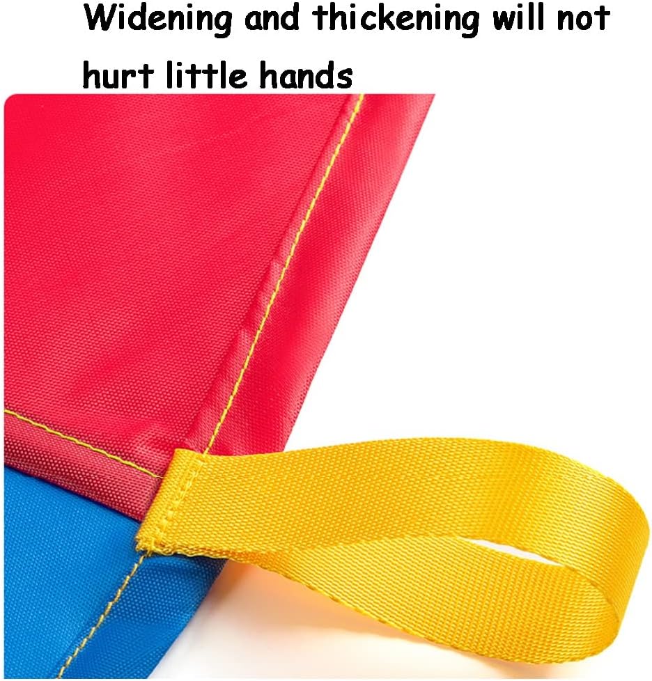 There is not a more beautiful sound in the world, than your child's laughter.Product Description:1.Use it as a large picnic blanket, make it home base for tag or hide under it-no more ruining your sheets for your childrens play fort.2.Colors of parachute upgrade with rainbow colors. Thickened oxford mesh is soft and . Double stitching is adopted for ing to pulling. Widen handles are very strong and not hurt your hands.3.And the games it can be used for are great for helping children socialize.Specification:Color:multi colorProduct Size:2*2M,3*,4*4M,5*5M,6*6M,7*7MMaterial:Oxford clothIncluded Contents:1 x Play Parachute1 x Storage bagNote:Please allow 0-2cm error due to manual measurement. Thanks for your understanding.