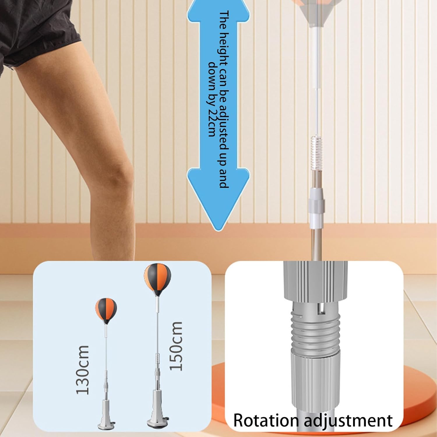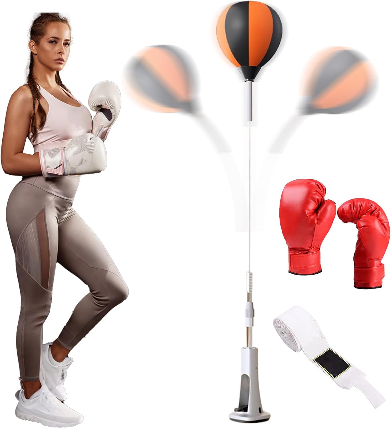 Featuring height adjustability and a robust rebound, this reflex bag is designed for reaction training. The stable spring base makes it suitable for martial arts, fitness workouts, and stress care. Good for teens, adults, and beginners, it facilitates kicking practice and enhances physical health in the comfort of your home or garage gym environment.Product name: boxing reflex bag (Glove colors are shipped randomly)Product material: EVA, stainless steelNote:Due to different lighting and screen settings, the item color may be slightly different from the picture.Due to different manual measurements, please allow a 1-2cm difference in size.Product list:Boxing reaction ball * 1 pieceBoxing gloves * 1 pieceBandage * 1 piece