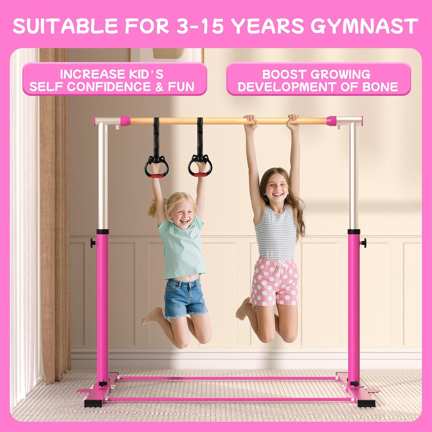 EL&IT·Wings Excellent Gymnastic Bar Brand Improved structure and heavy metal base build a safe and professonal kip bar!!! 1 Adjust to your desired height The adjustable height (from 3’ to 5’ with 12 levels) makes it perfect for users of any age and height. 2 Stainless steel regulating arm Sturdy, durable and 100% rustproof,wider long feet and thick round support safeguards your kids for 100% security 3 Durable and Strong bar 260 Pound Weight Limit wood Bar 4 Powder coated metal surface High quality paint will stay shiny for years,not as the cheap and pungent smell paint. EL gymnastic kip bar could accompany your kids on the process of growing and training. 1.Strengthen crureus and muscle 2.Improve body' balance force and flexiblity 3.Help to build confidence and courage 4.Having fun and enjoying the childhood fun Choosing a gymnastics bar exhibits huge concern to many, EL&IT·Wings gymnastic bar is good for beginner at young age, and it will be a perfect gift for your children to pratice their gymnastic skills. Gymnastic Bar Specification Material: Iron, Wood Color Available: Blue / Pink/Purple Height:Adjustable from 3’ - 5’ Assembled Dimensions: 4’Wx4.5’(5.8’ including side feet)Lx(3’-5’)H Weight: 28kg Weight limit: 260 lbs We concerns on the product quality and customer's shopping experience. If you have any suggestions or ideas for our gym horizontal bar, please let us know directly, we care about the inner thoughts of each customer.We will continue to improve our products. If there is any problem with our product, please feel free to contact us. We provide 24 hours friendly email customer support for you. Any quality problem will be refund or replaced.