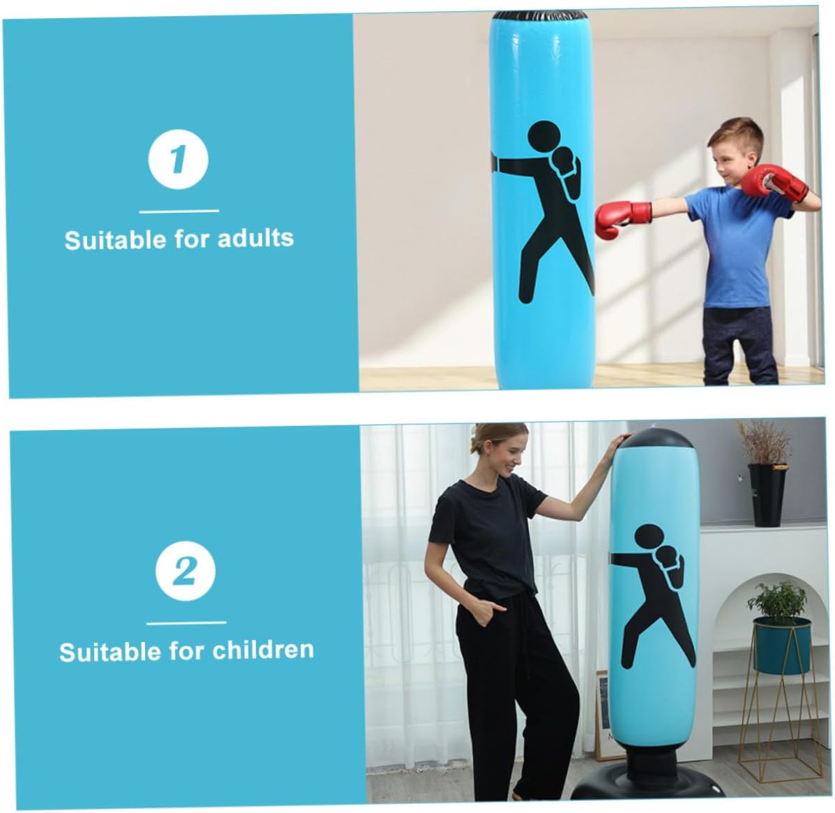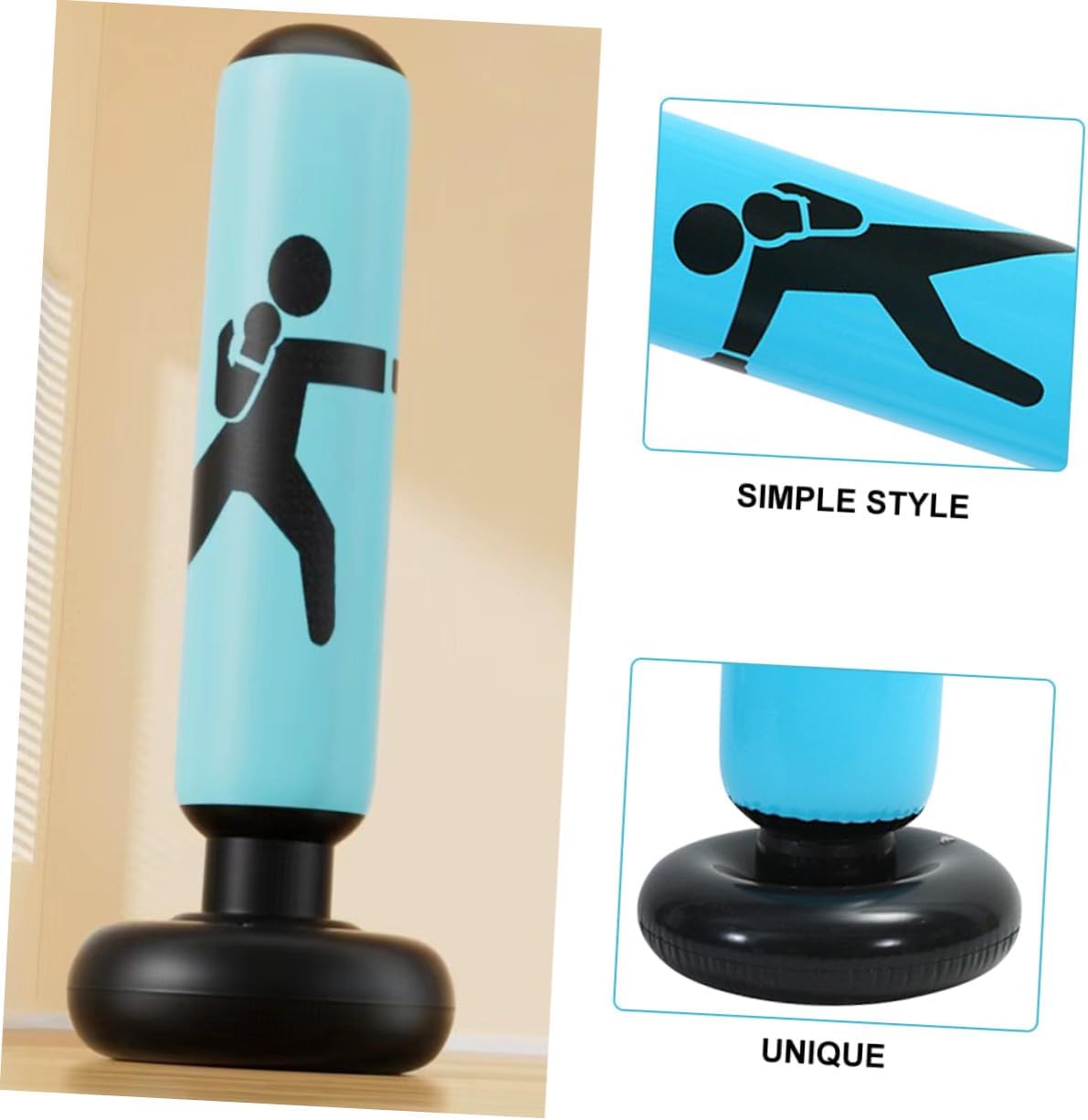 Package List 1 x Punching Bag Features -Color:Sky-blue -Product Info:Boxing sandbag -Size:160.00X40.00X40.00cm/62.88X15.72X15.72in -Material:PVC -The good materials used in the construction of this product ensure its longevity, allowing users to enjoy its benefits for a long time. -You can vent your pressure on work, study and troubles. It is a good prop to punch, kick and can serve for a long time boxing fitness bag. -This product is perfect for intense workouts, providing a challenging and effective way to release stress and get a good workout punching bag with stand. -The unique design of the inflatable punching bag adds workouts, making it an enjoyable and engaging fitness activity boxing punching bags. -A great way to relax stress and get a good workout is by using the adult and inflatable punching bag boxing punching bag.Goods Descriptionboxing fitness bag The punching bag is made from good materials that are designed to last.punching bag with stand The thick design ensures that it can withstand even the tough punches and kicks, making it perfect for intense workouts.inflatable punching bag The inflated column height is suitable for and adults, suitable for indoor and outdoor use