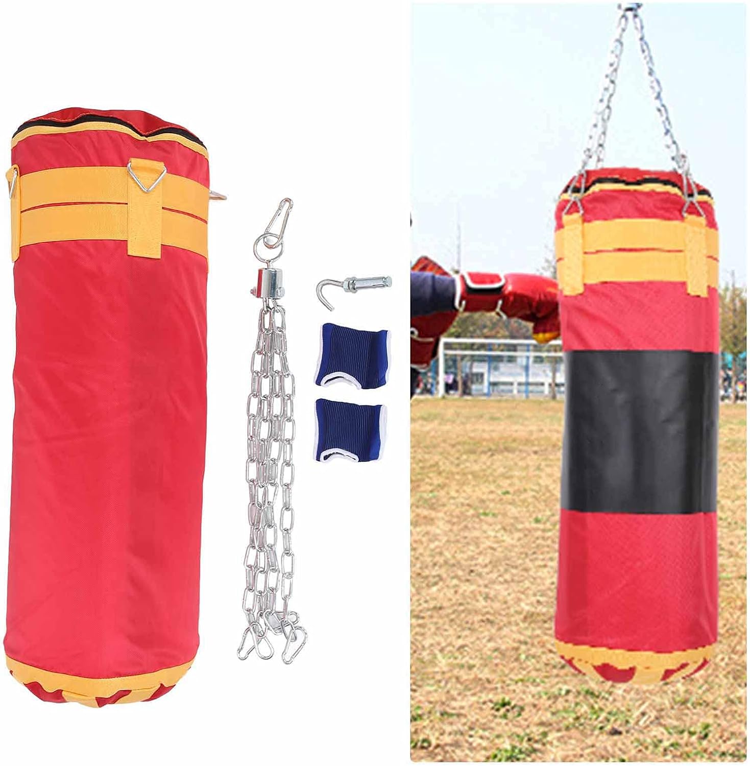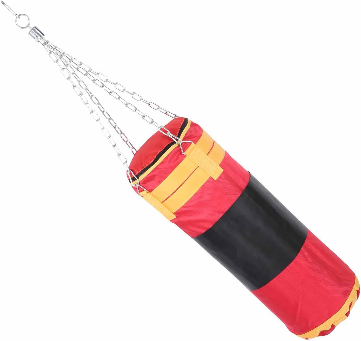 [ AND LONG-LASTING] The outer shell of this boxing sandbag is made from high-quality Oxford cloth, which is abrasion- and explosion-proof, ensuring it can withstand intense use over a long period. This makes it a choice for children who are passionate about boxing and need a product.[SAFE AND COMFORTABLE] The middle filler of the sandbag is a foam sheet designed to absorb and distribute the impact force effectively. This feature ensures that children can practice boxing safely without risking injury, making it a tool for both beginners and young enthusiasts.[STRESS RELIEF AND EXERCISE] This hanging punch bag provides a way for children to excrete excessive stress and keep their mind and body through boxing exercises. It’s an excellent way to encourage physical activity and mental well-being in a fun and engaging manner.[EASY TO FILL AND INSTALL] The sandbag is designed for convenience, with a zipper seal at the top that makes it easy to fill with suggested materials like sawdust, rags, or old clothes. The installation process is straightforward, allowing for quick setup and immediate use.[SECURE AND STABLE] Three thick metal loops are firmly sewn onto the bag to securely attach the installation chain, ensuring the sandbag remains stable and does not fall when hit. This feature provides added safety and reliability during intense boxing sessions.Spec:Item Type: Boxing SandbagMaterial: Oxford Cloth + CR + Foam SheetSize: Approx. 80 X 30 X 30cm/31.5 x 11.8 x 11.8in(Fully Filled)Applicable Age: 7-16 Years OldMaximum Bearing Weight: Approx. 25kg/55.1lbSuggested Fillings: Sawdust, flowers, rags, old clothes, silk, wheat, corn and beans.Package List:1 x Sandbag1 x Chain1 x Chain Hook2 x HandguardNote:Manual measurement, please allow 1‑2cm error