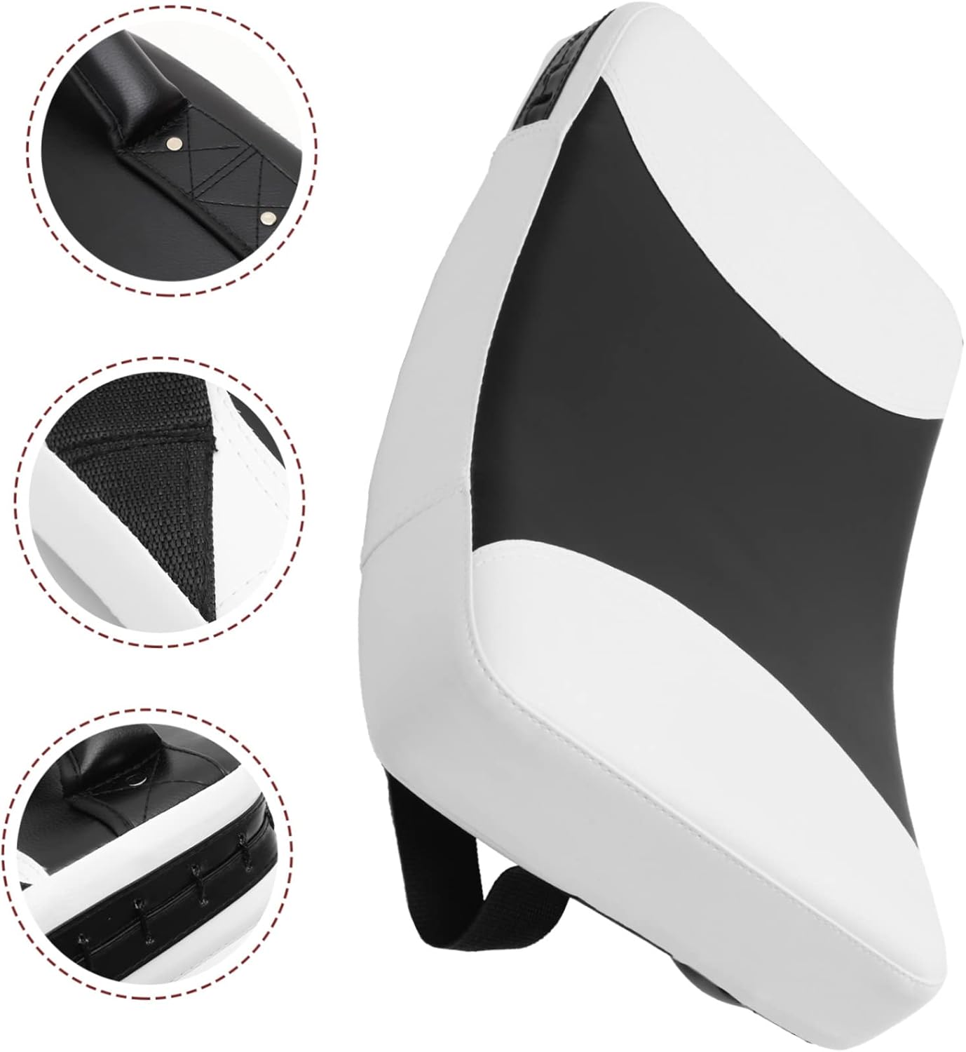 Package List 1 x kicking pad Features -Size:45.00X30.00X7.50cm/17.68X11.79X2.95in punching board -Material:Leather, sponge thai pads -Color: Black and white kick pads martial arts - The kick pad is lightweight and holding it for a long time will not make you tired, comfortable to use pad. - With workmanship and reliable design, more effective to prevent the from bursting off karate boys. - Functionality and not easy to crack, kickboxing pad give you a comfortable touch and kickboxing punching experience boxing pad. - Boxing kick strike shield is made of sponge and leather, which without being easily damaged targets. - Kick pad is suitable for professional kickboxing people, amateurs, also for for beginners, etc kicking pads thai.Goods Informationtaekwondo equipment Easy to wear on arm, suitable for boxing sports, kickboxing and more.kicking paddles taekwondo Made of leather and sponge material, kick pad is comfortable and reliable, let you enjoy your boxing practicing or training time.martial arts training equipment Flexible design, suitable for most people, which ensure its practicality and popularity