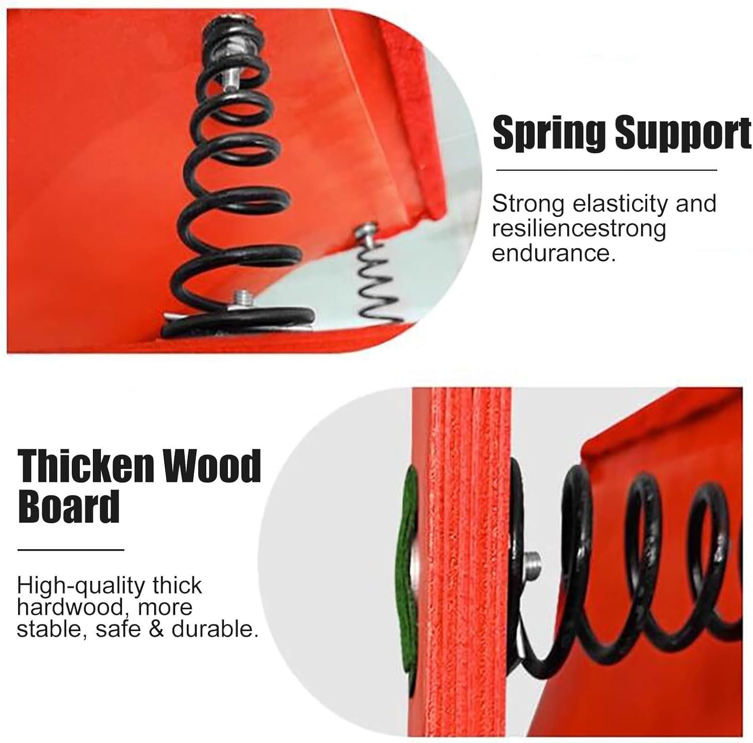 The Red Heavy Duty Springboard is a versatile and training tool designed for both adults and kids. Made with hardwood and manganese steel springs, this springboard is built to withstand intense use without deforming or tearing. It’s perfect for improving your gymnastics, vaulting, or tumbling skills at home, in the gym, or during training sessions.The springboard features 2 high-elasticity springs that provide excellent bounce and energy return, allowing athletes to jump higher while reducing fatigue. Whether you're practicing vaulting techniques, working on your coordination, or building strength, this springboard will help you perform at your best.Its non-slip, wear-resistant felt surface ensures a secure and comfortable grip while you train, preventing any risk of sliding and providing a safe surface for your feet. Plus, its ergonomic design makes it easy to use and store, making it an ideal piece of equipment for a variety of fitness activities.