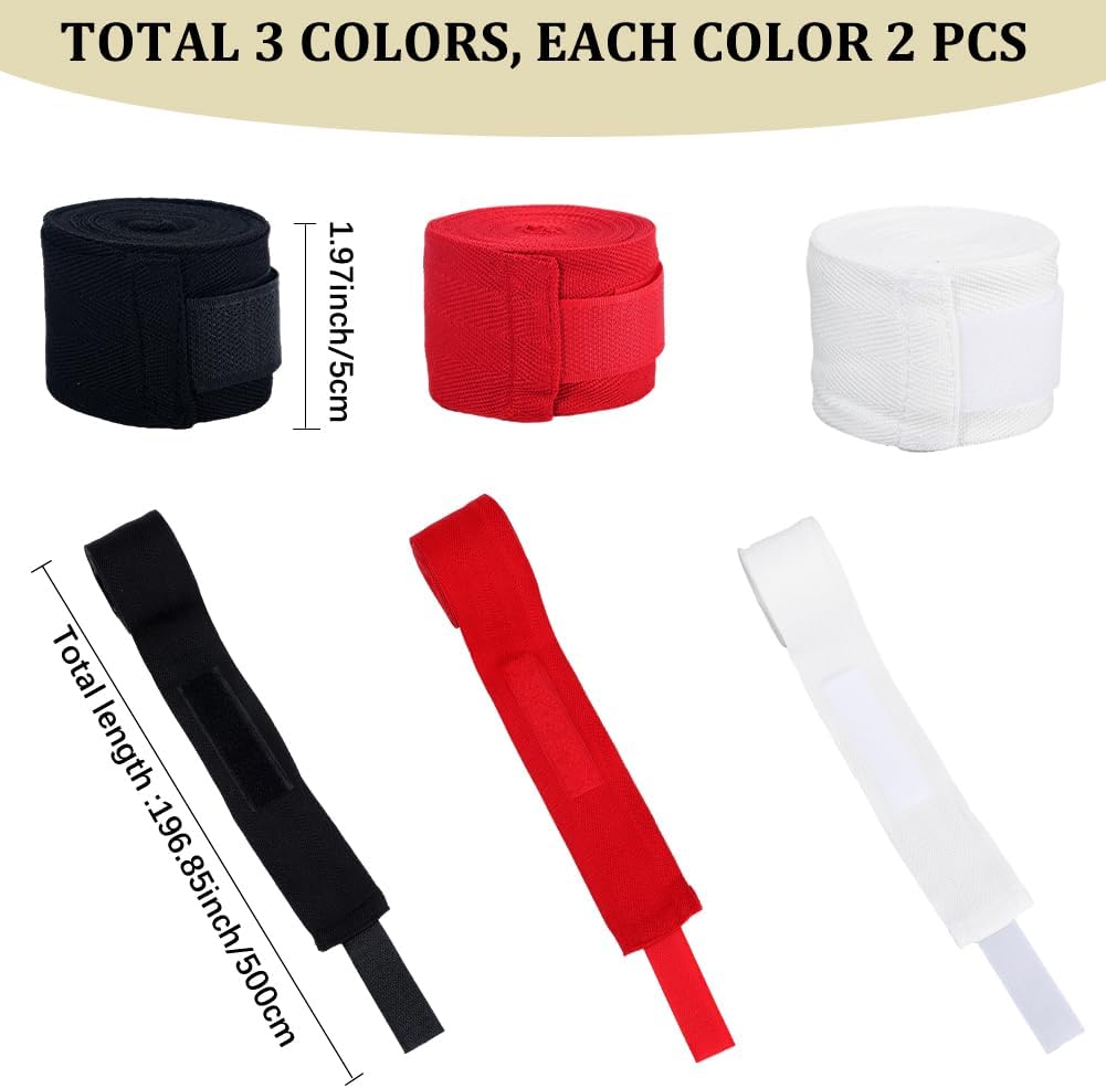 CREATCABIN 6pcs Boxing Hand Wrap Inner Glove 200In Thumb Loop Bandage Elasticated Padded Fist Under Mitt Protection Muay Thai MMA Kickboxing Martial Art Punching Training for Men Women Black Red White Brand: CREATCABIN About our product Color: As the pictures shown. Material:Cotton Size:The width is about 5cm/1.97 inch,the length is 500cm/196.85 inch,the thick is 0.35cm/0.14in. Features: tactical equipment,boxing hand wraps,cotton boxing hand wrap, cotton elastic bandage for boxing for men and women,black red white. After Sales Service:If you encounter any question,please feel free to contact us. we will provide you with the most satisfactory solution,we is committed to providing you with 100% high quality products and services.